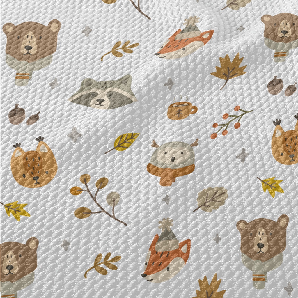 Autumn Cute Animals Birdseye Piqué