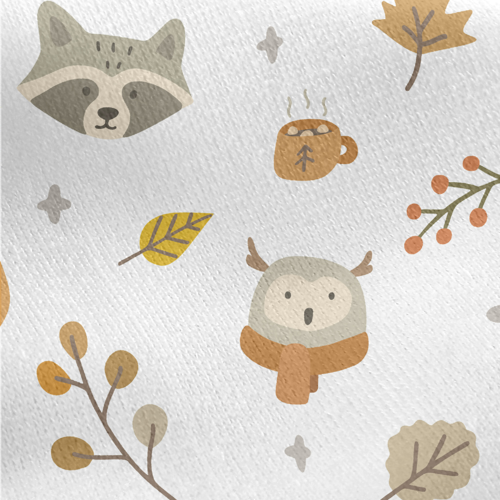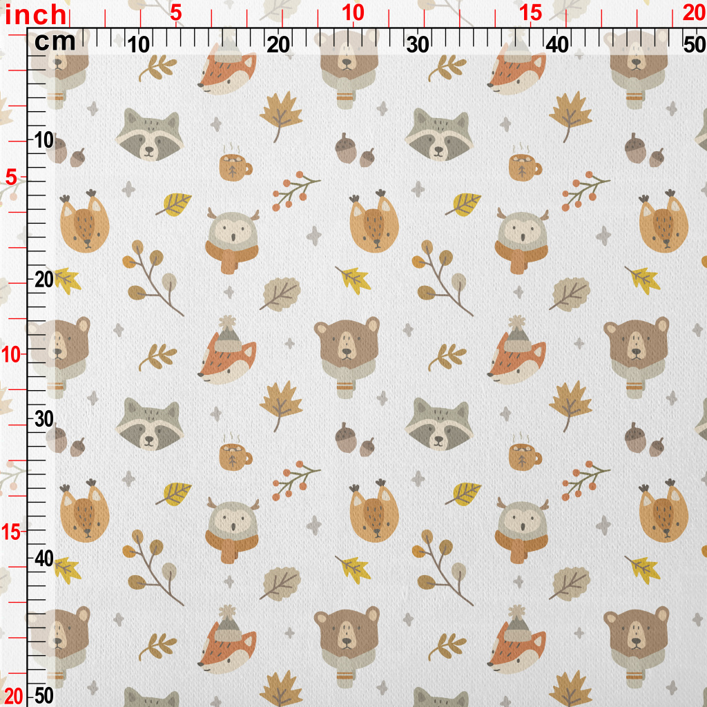 Autumn Cute Animals Jersey Backed Fleece