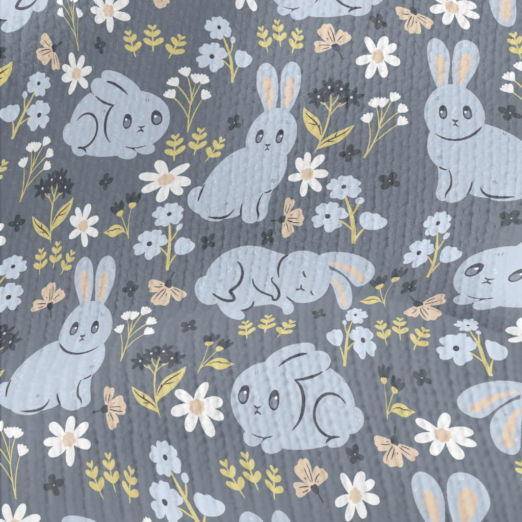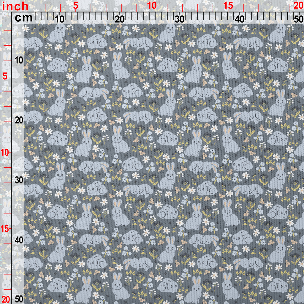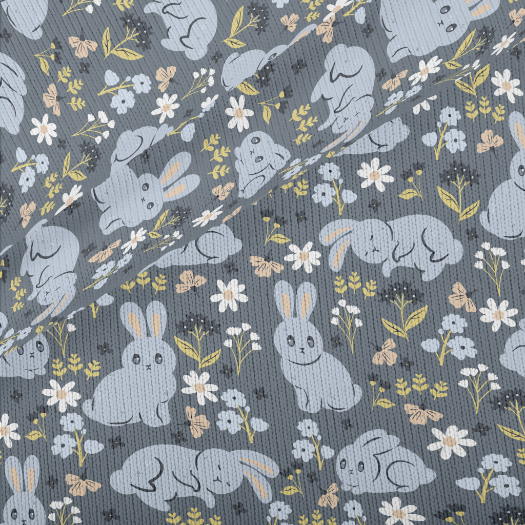 Blue Rabbit And Flowers Stretch Jersey