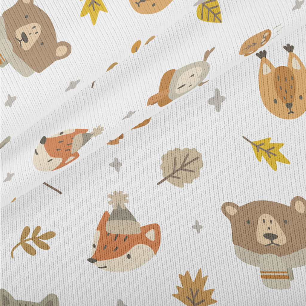 Autumn Cute Animals Stretch Jersey
