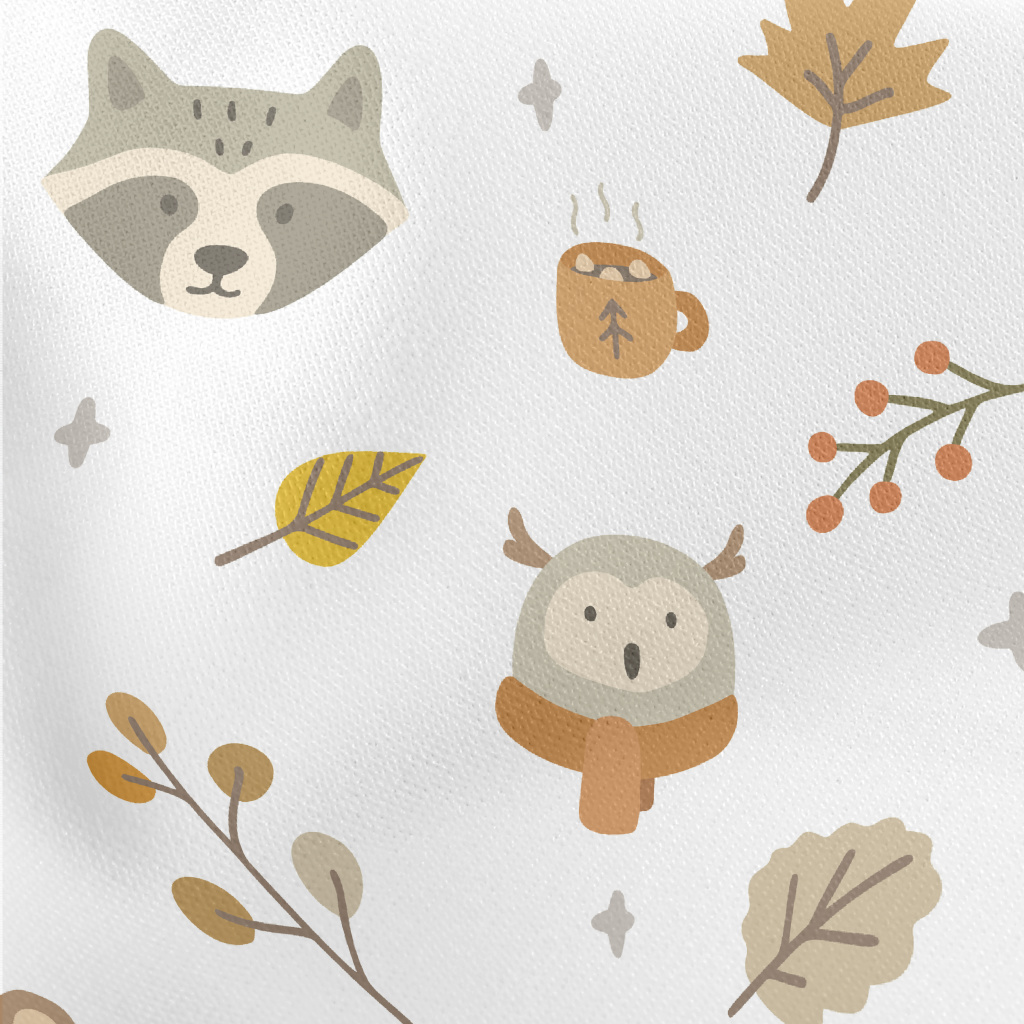 Autumn Cute Animals Lightweight Cotton Poplin