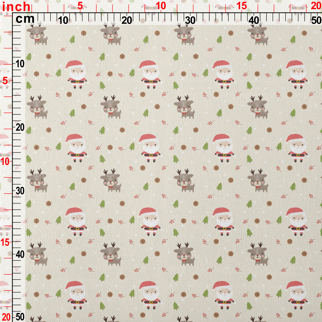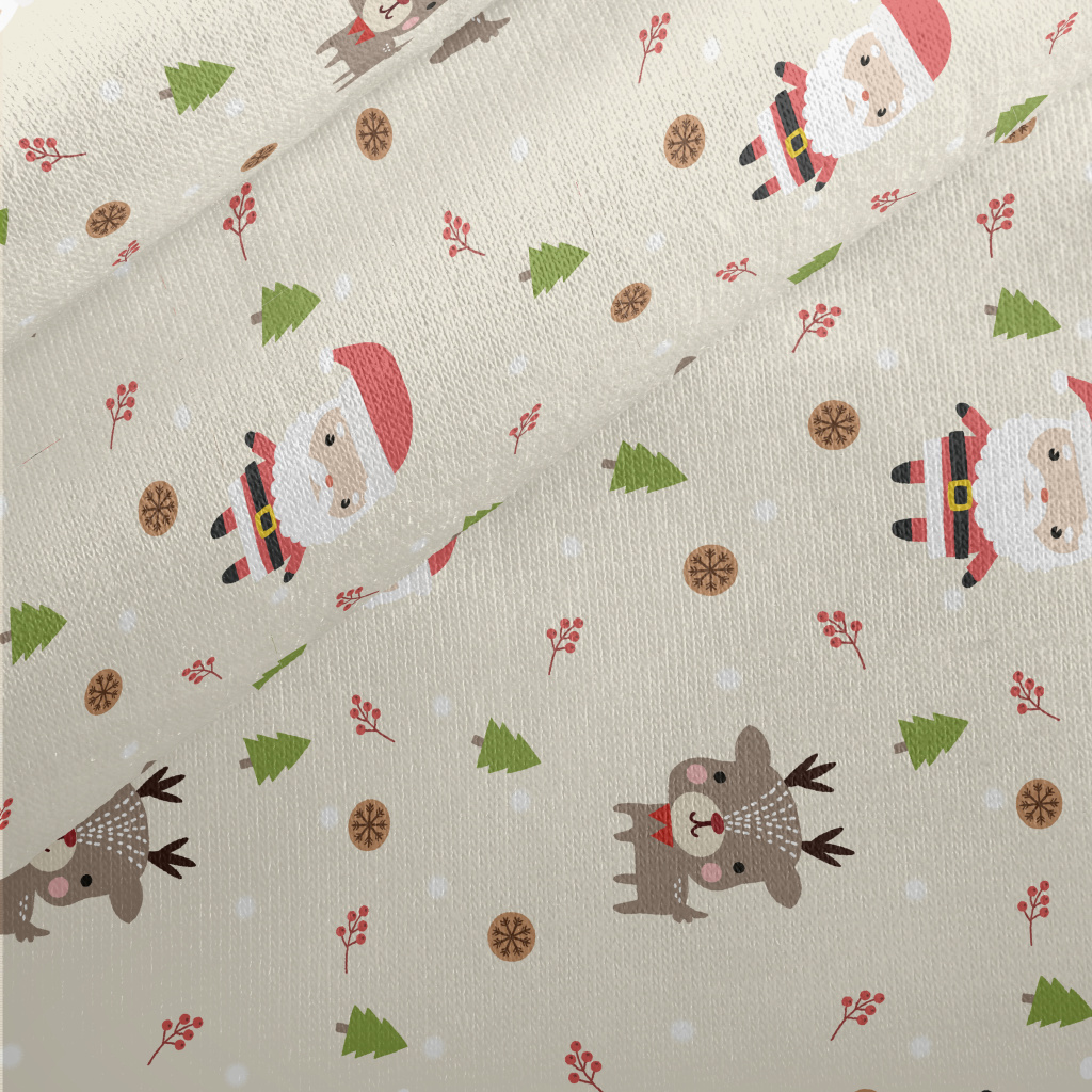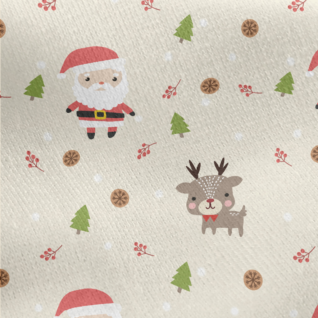 Santa Claus And Cute Elk Jersey Backed Fleece