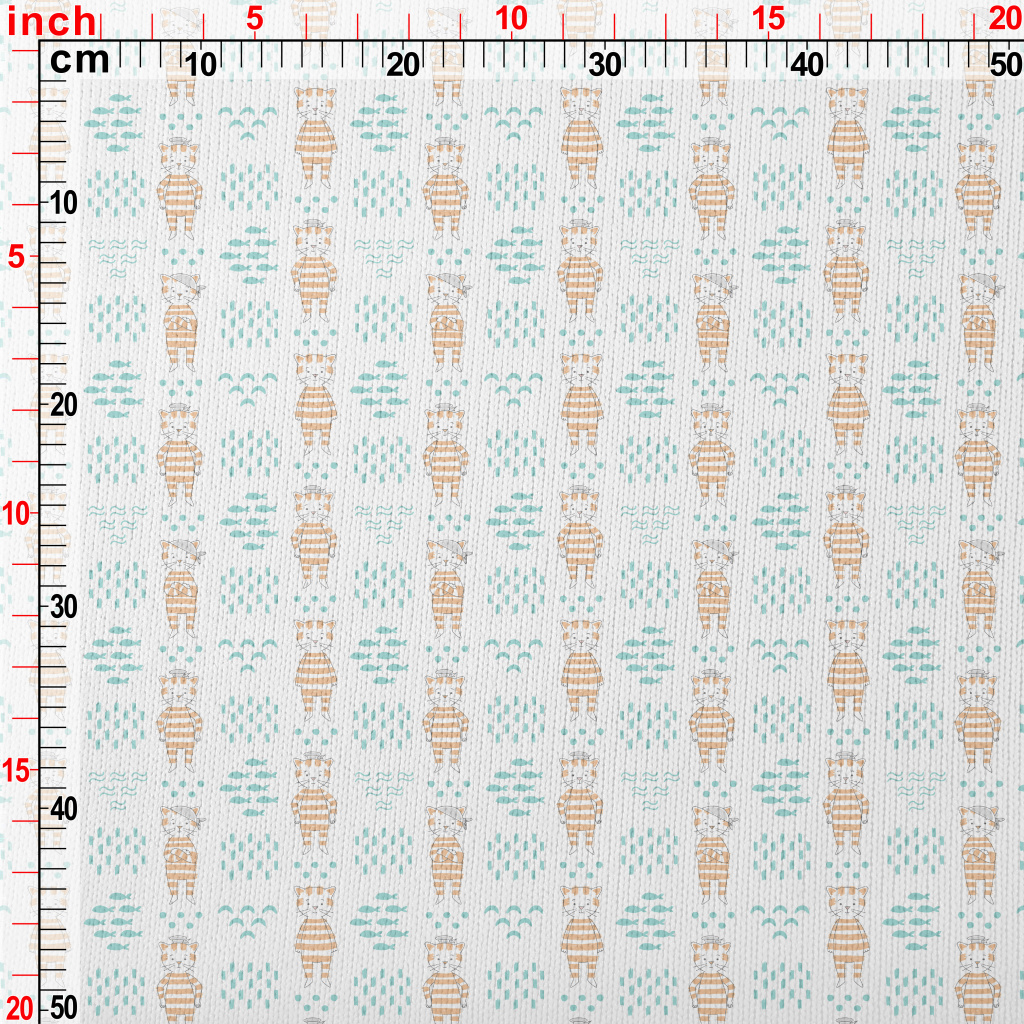 Hand Drawn Textured Cat And Fi Stretch Jersey