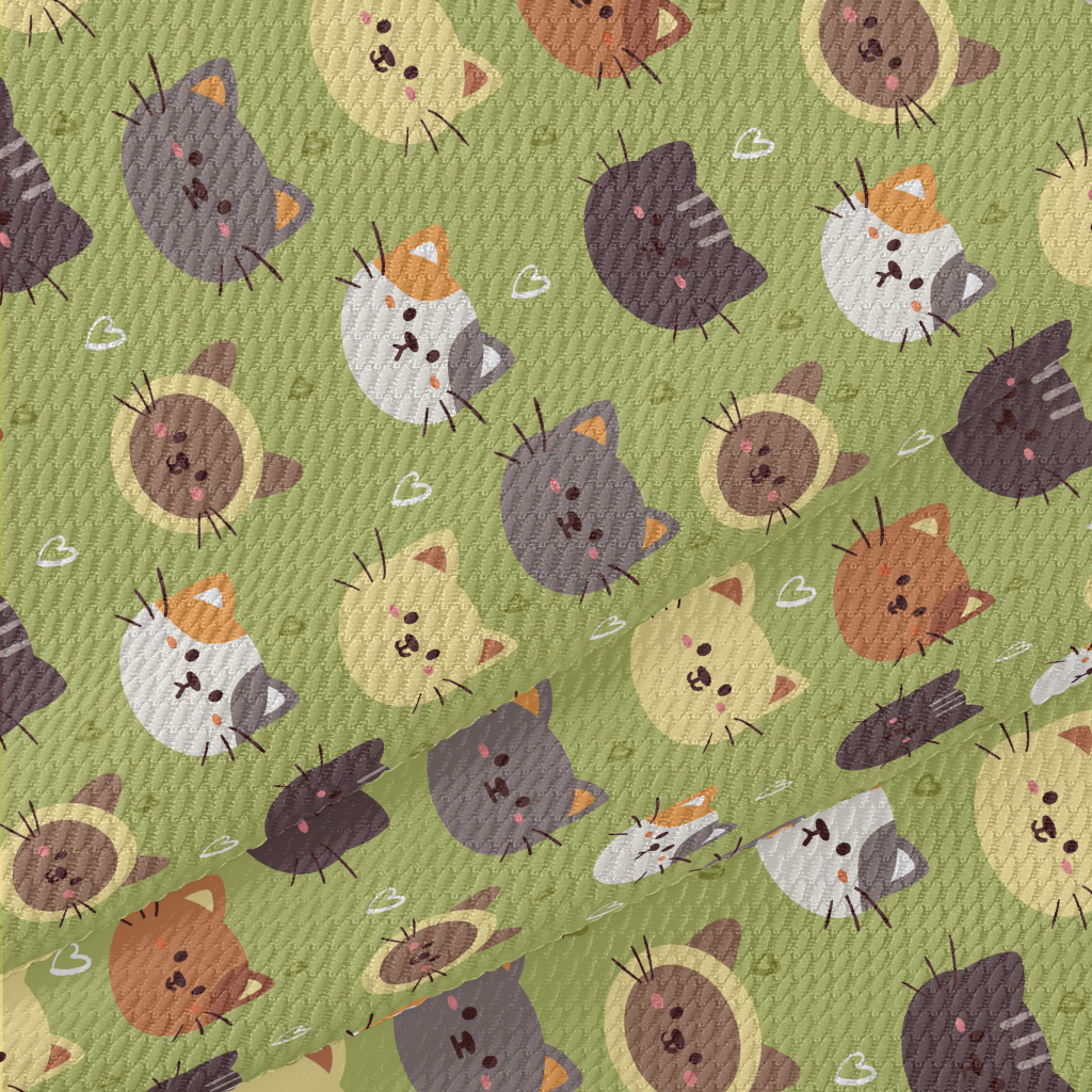 Round And Cute Cats Birdseye Piqué