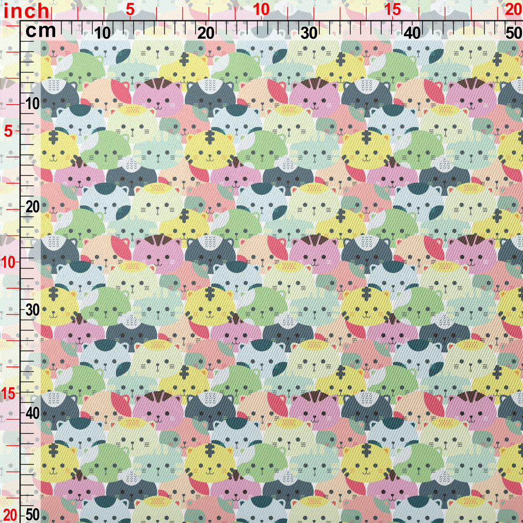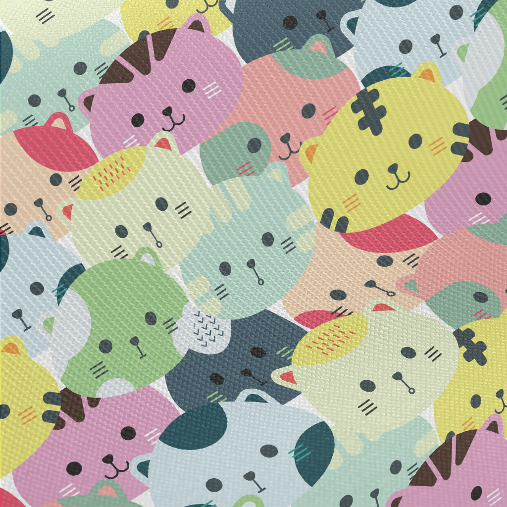 Colorful Cat Head Midweight Cotton Poplin