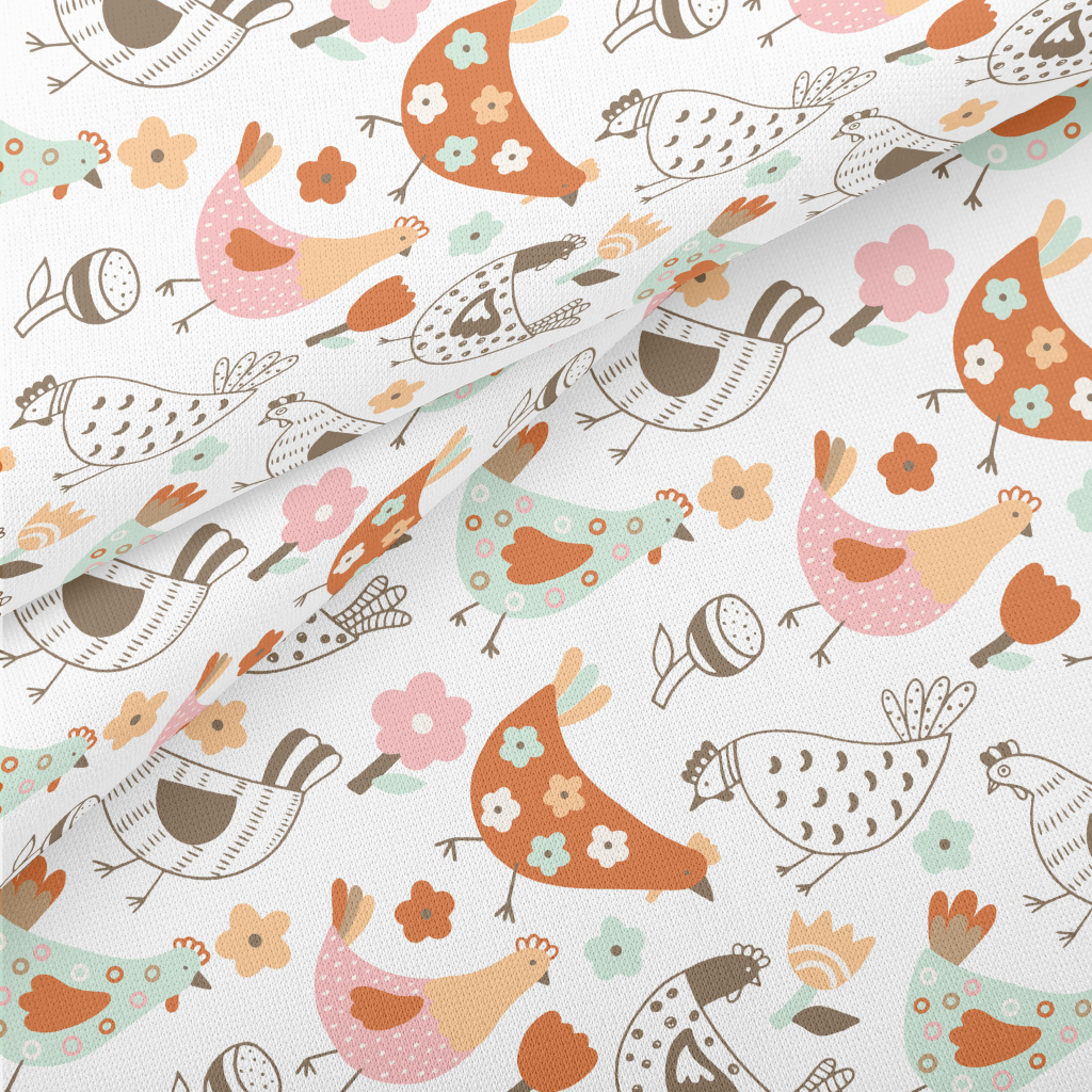 Various Colorful Hens Lightweight Cotton Poplin