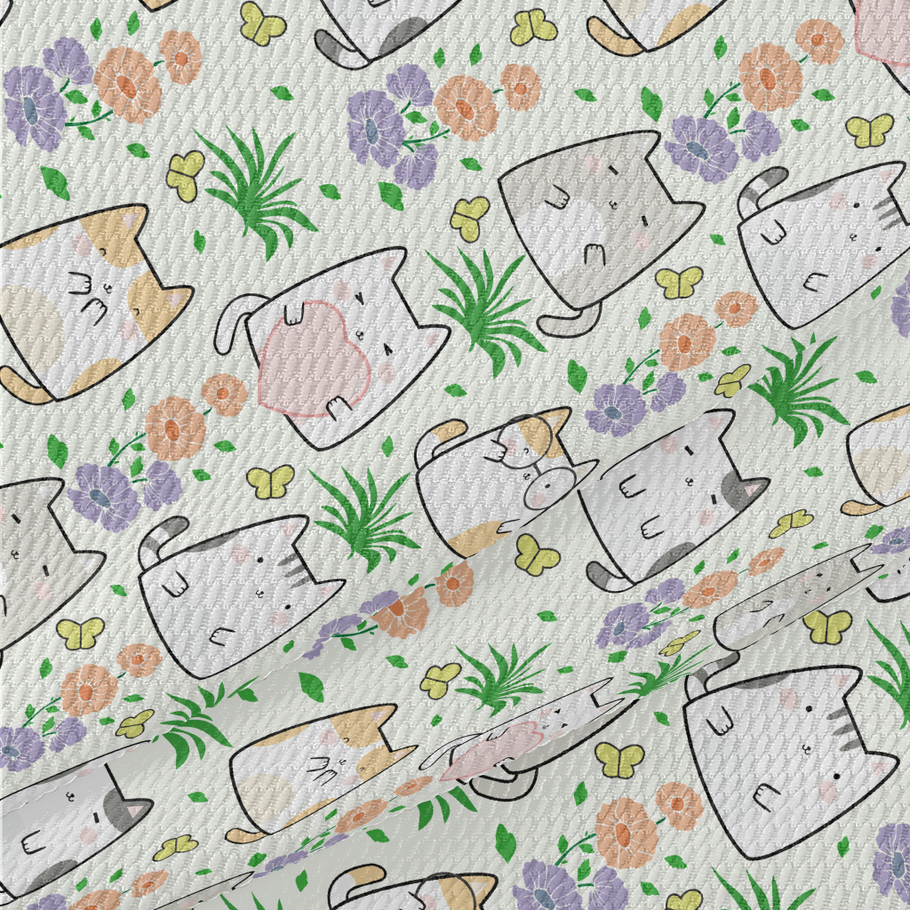 Cute Cat In The Flower Garden Birdseye Piqué