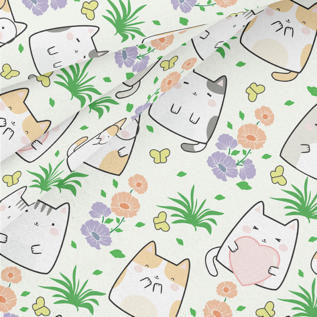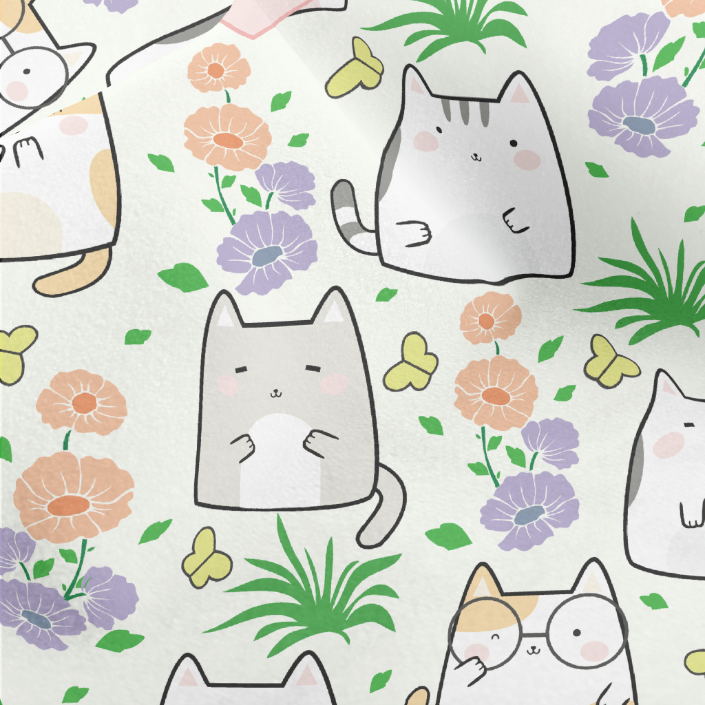 Cute Cat In The Flower Garden Micro Fleece