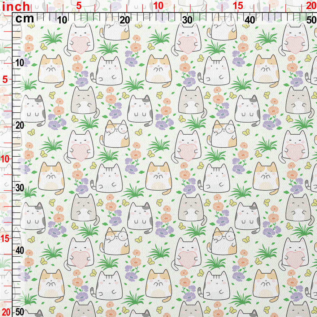 Cute Cat In The Flower Garden Lightweight Performance Linen
