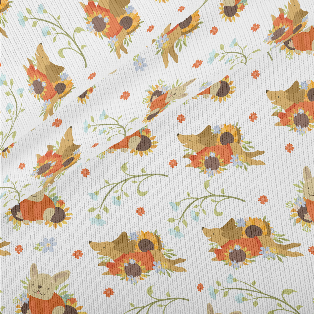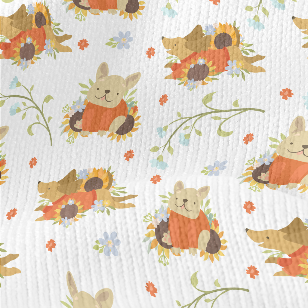 Dog In Sweater With Flowers Stretch Jersey
