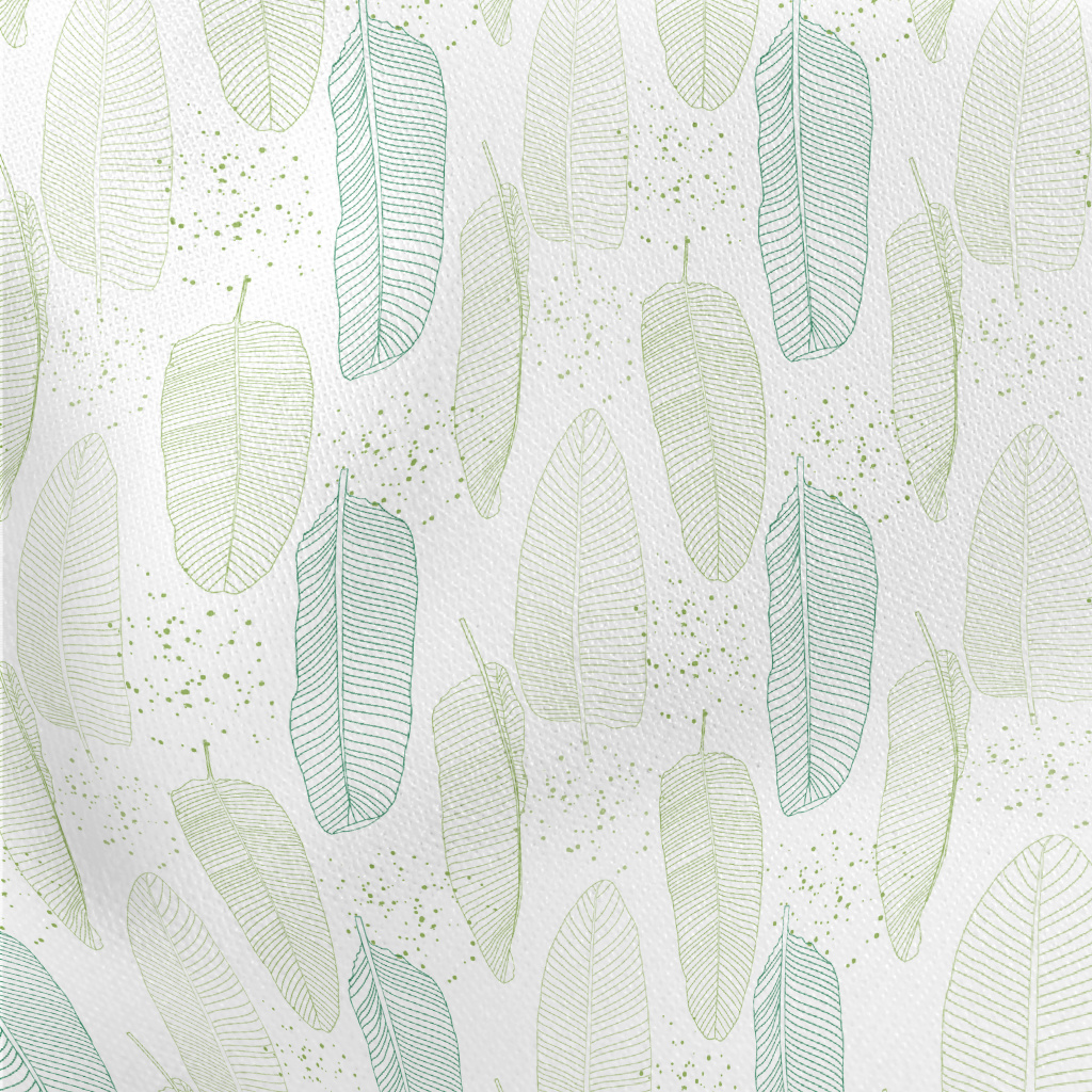 Simple Green Line Leaves Lightweight Cotton Poplin