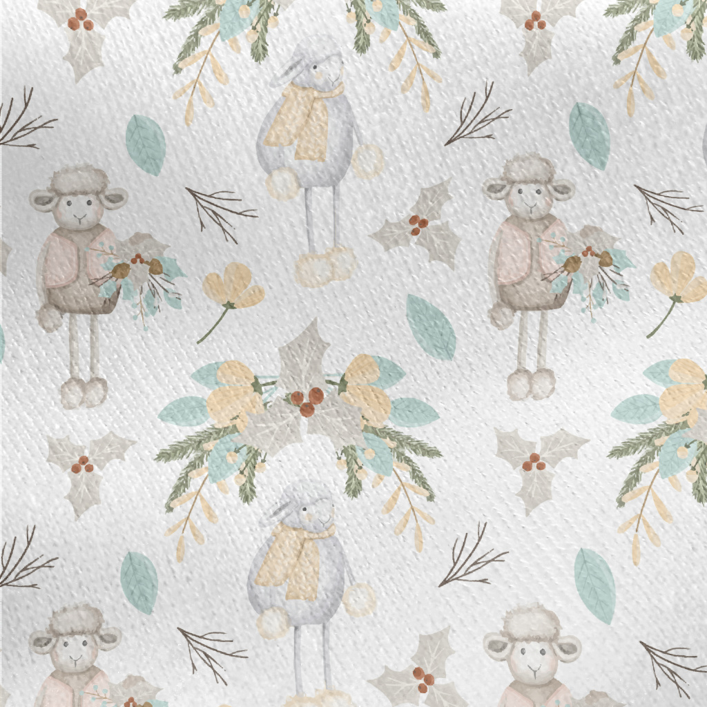 Hand Drawn Sheep With Christma Jersey Backed Fleece