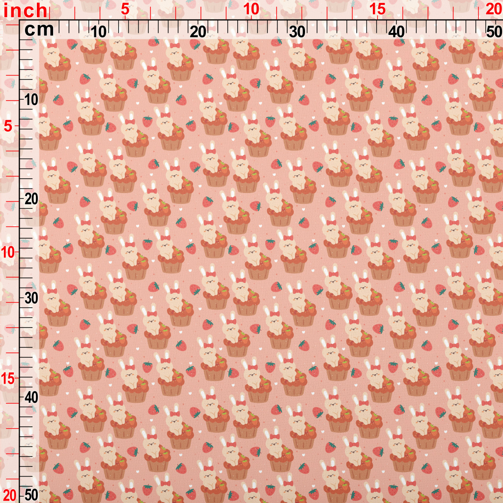 Bunny In Strawberry Cupcake Lightweight Cotton Poplin