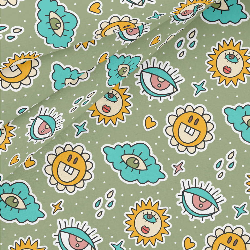 Eyes Clouds Sun Flowers Micro Fleece