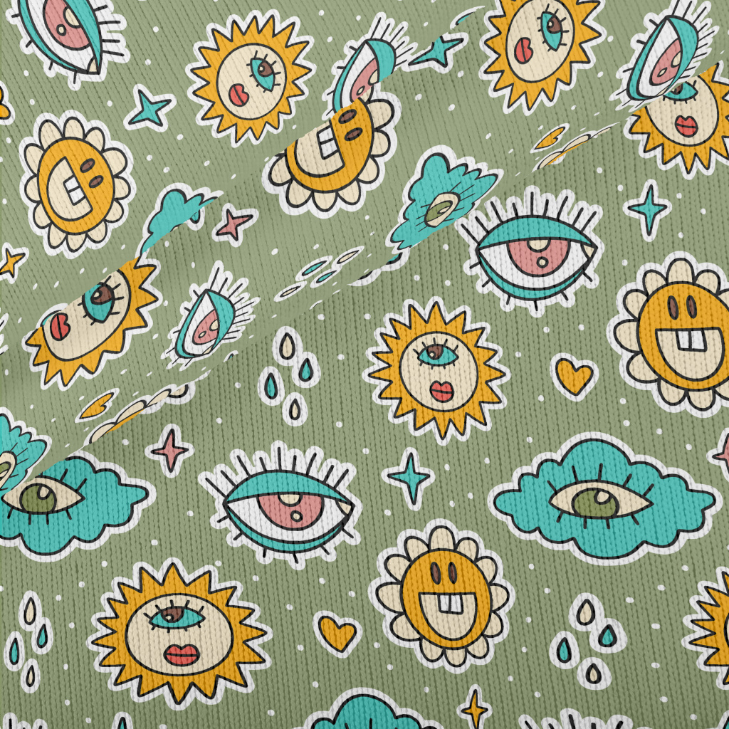 Eyes Clouds Sun Flowers Stretch Jersey