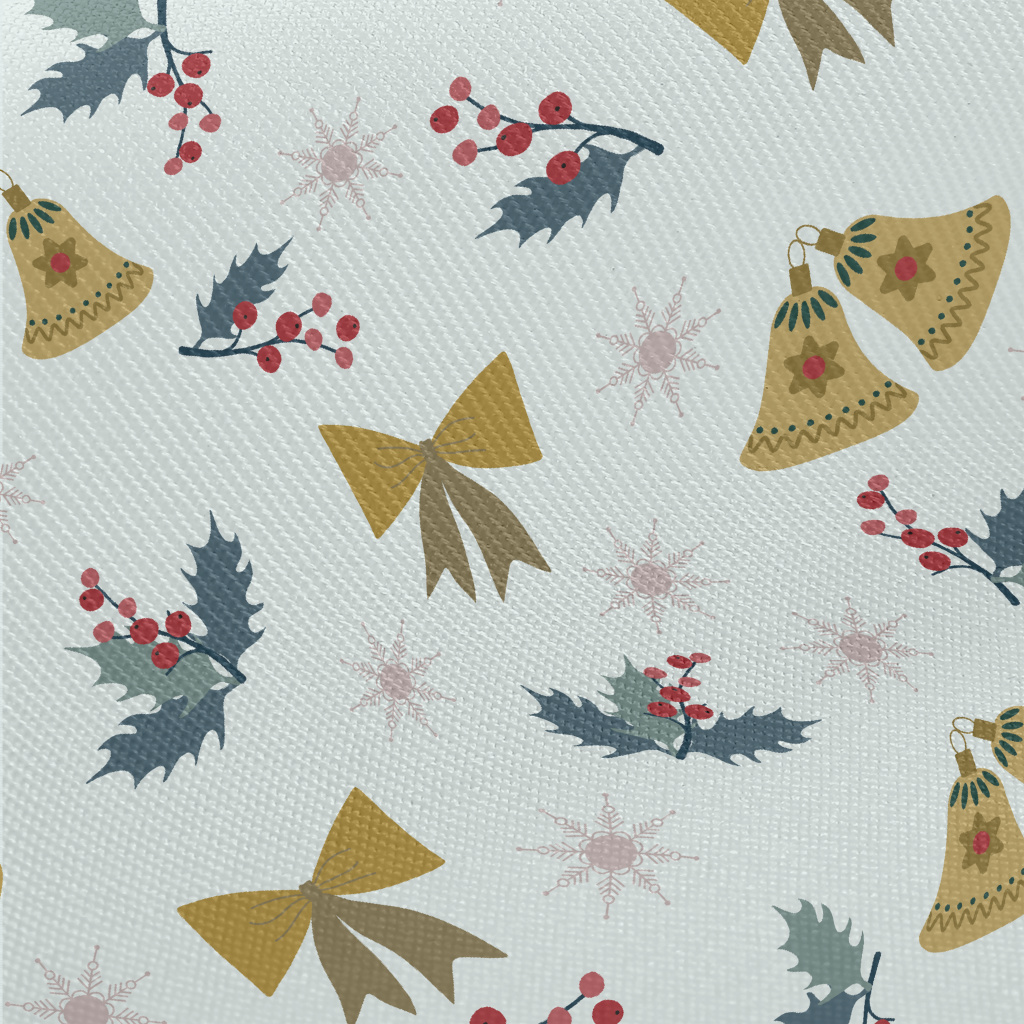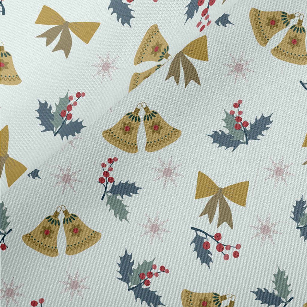 Christmas Bells And Tree Branc Midweight Cotton Poplin