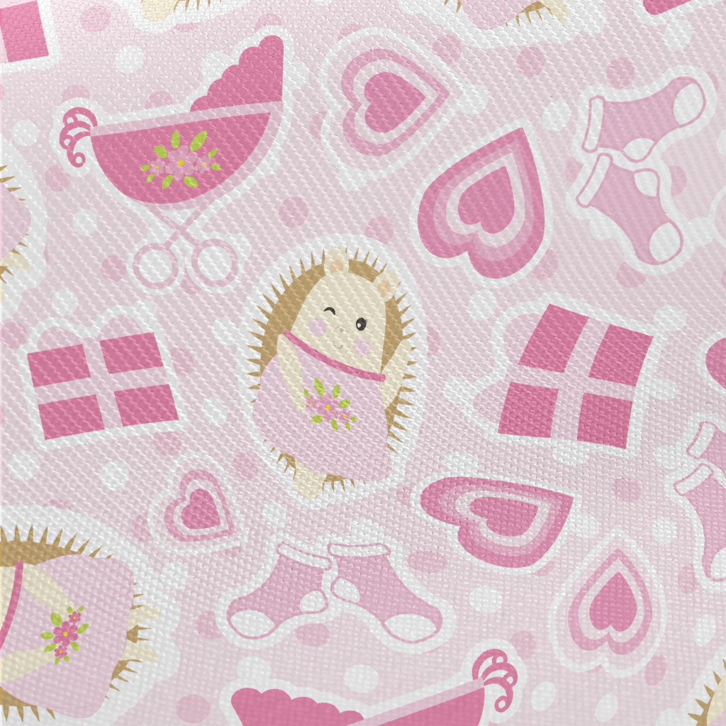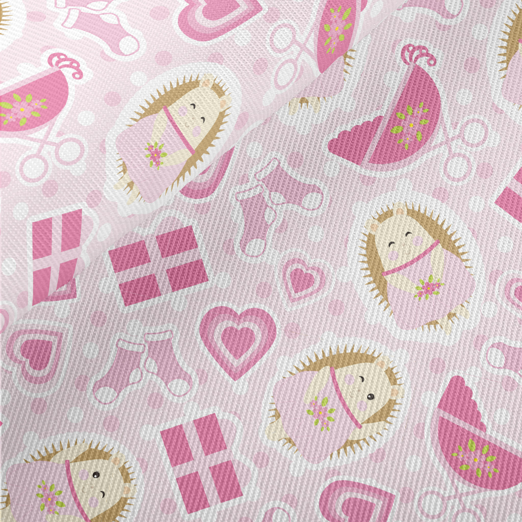 Pink Hedgehog And Baby Carriag Twill
