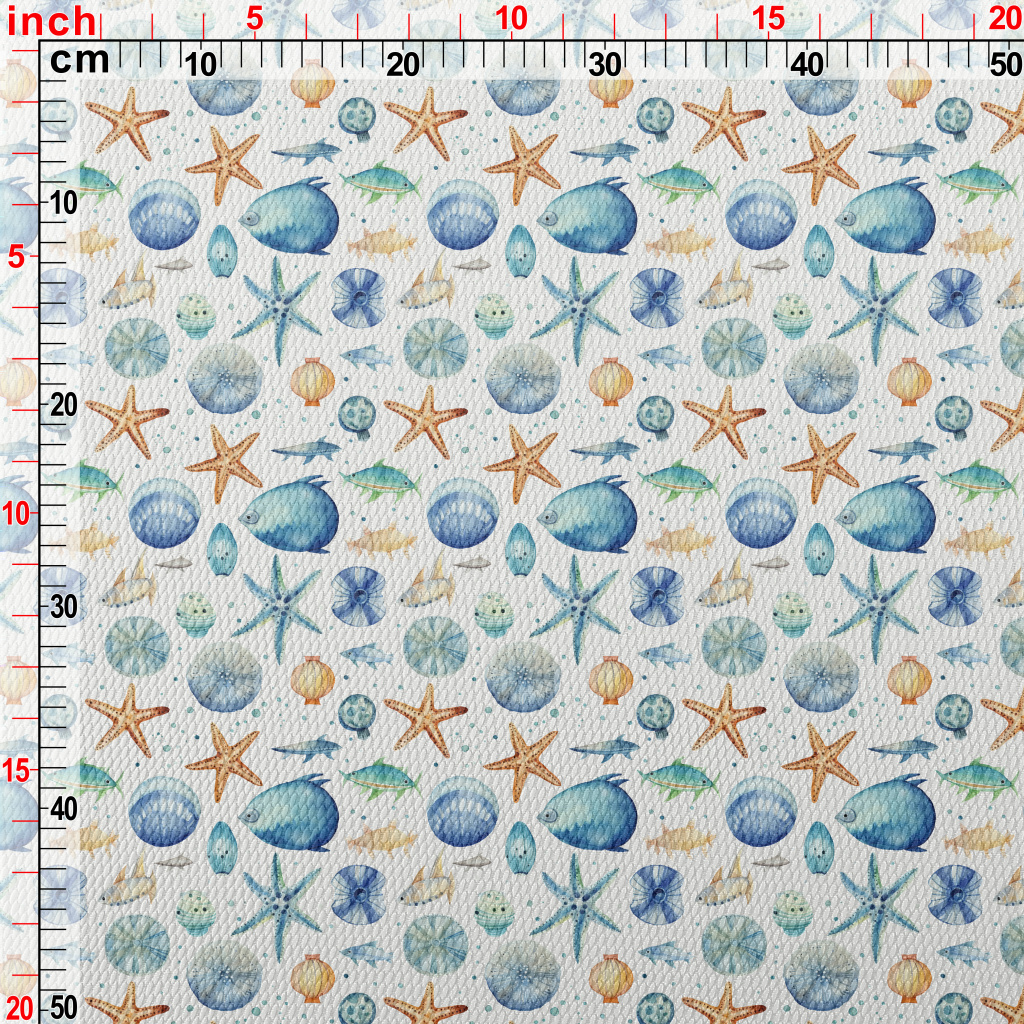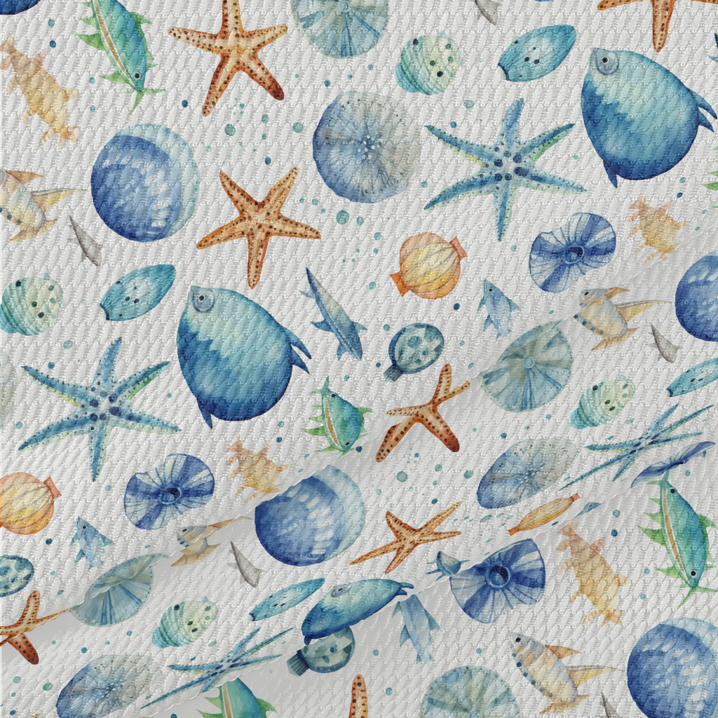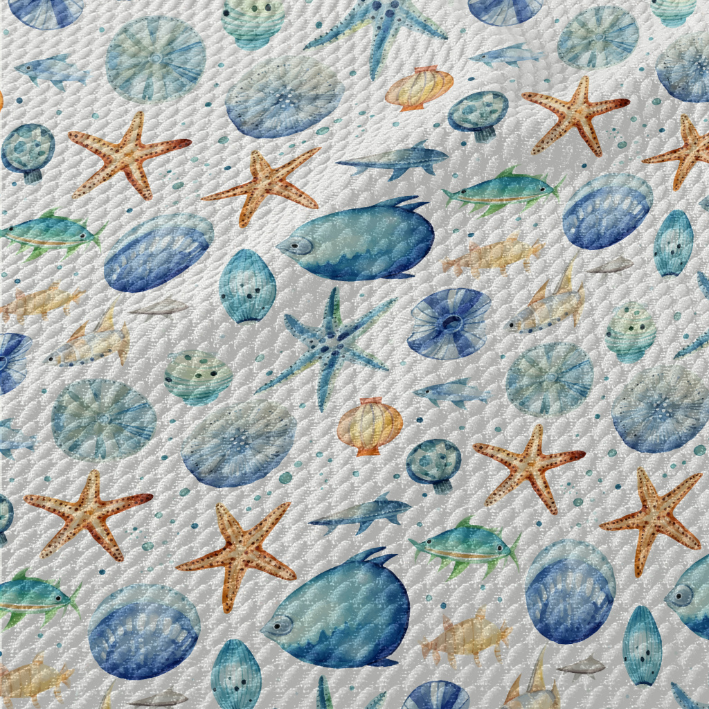 Hand Drawn Starfish Shells Fis Birdseye Piqué