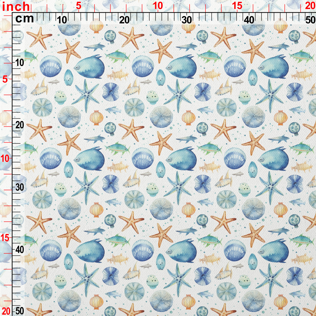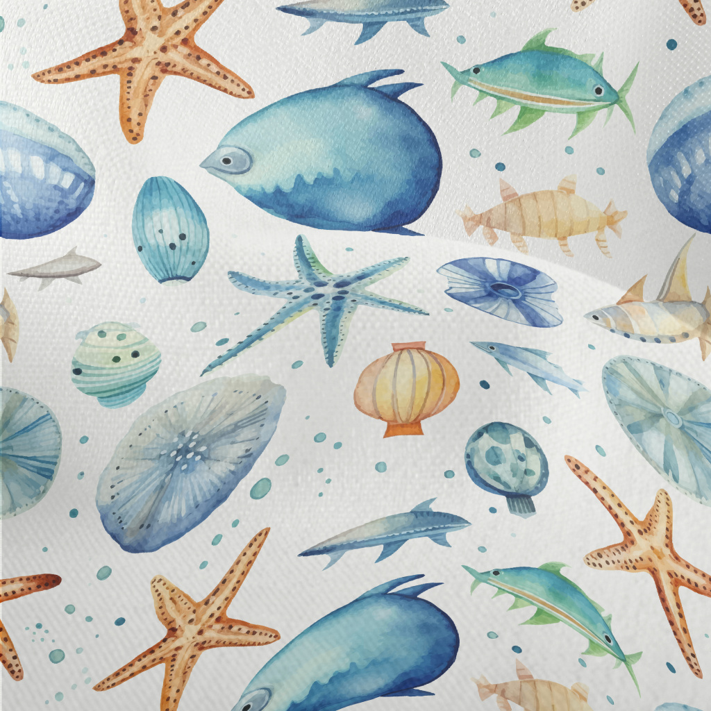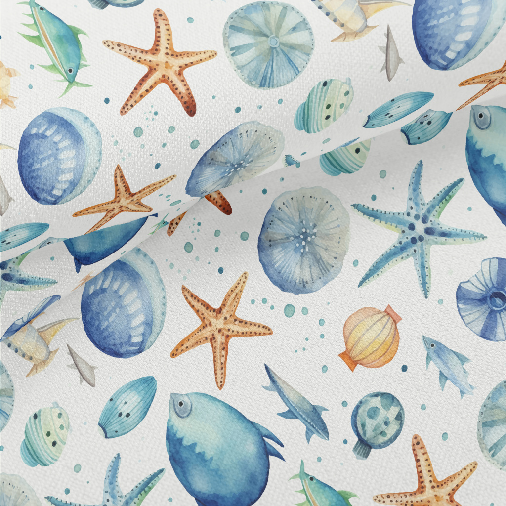 Hand Drawn Starfish Shells Fis Lightweight Performance Linen