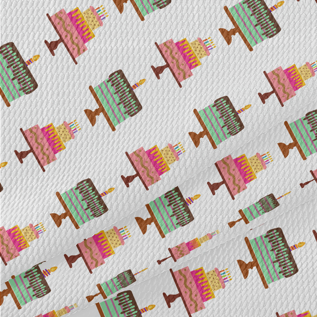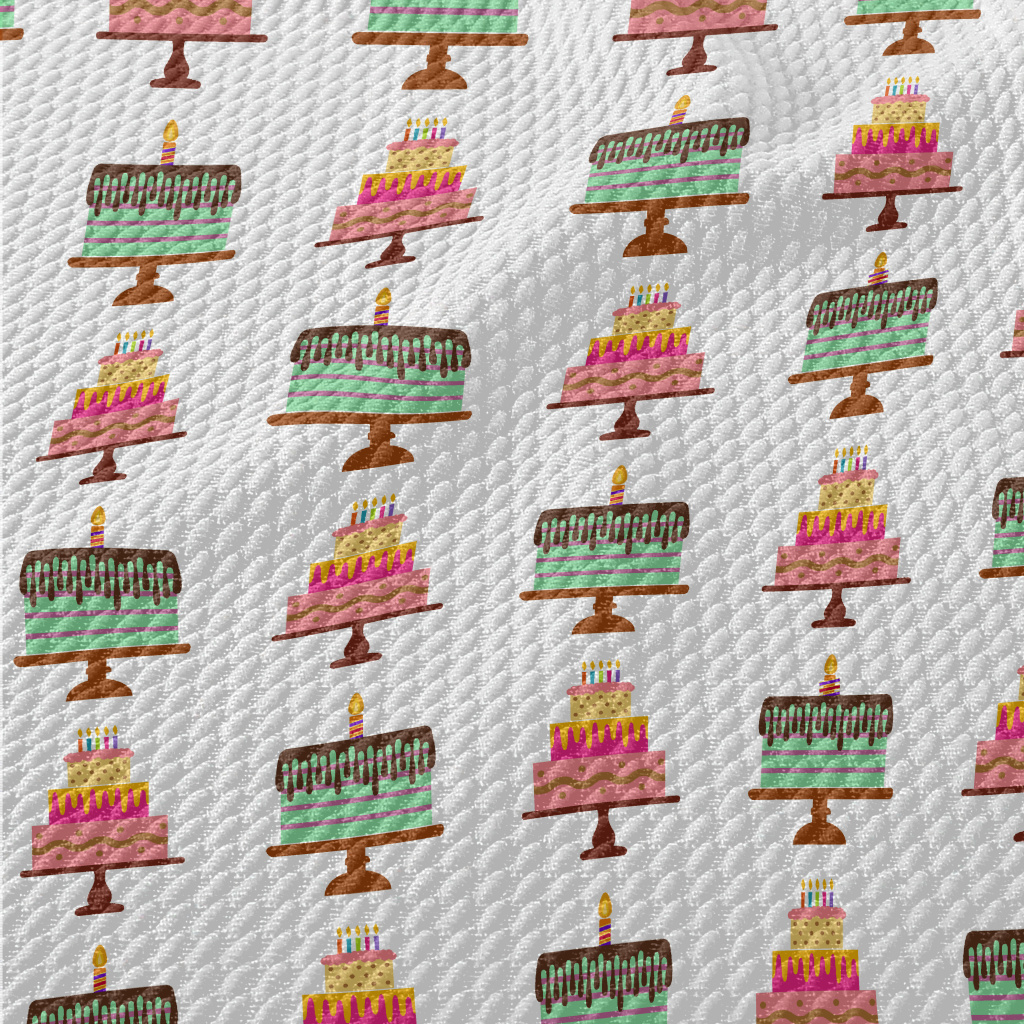 Pink And Green Birthday Cake Birdseye Piqué