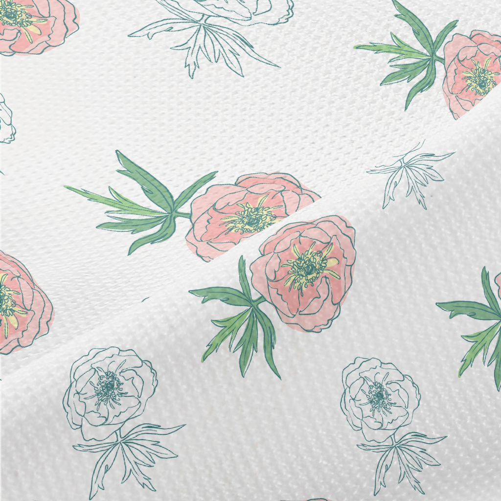 Doodle Pink Flowers Piqué