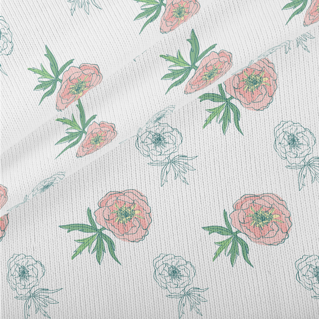 Doodle Pink Flowers Stretch Jersey