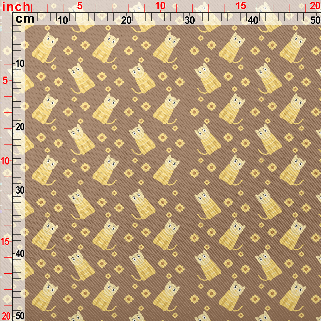 Cute Cat And Flowers Twill