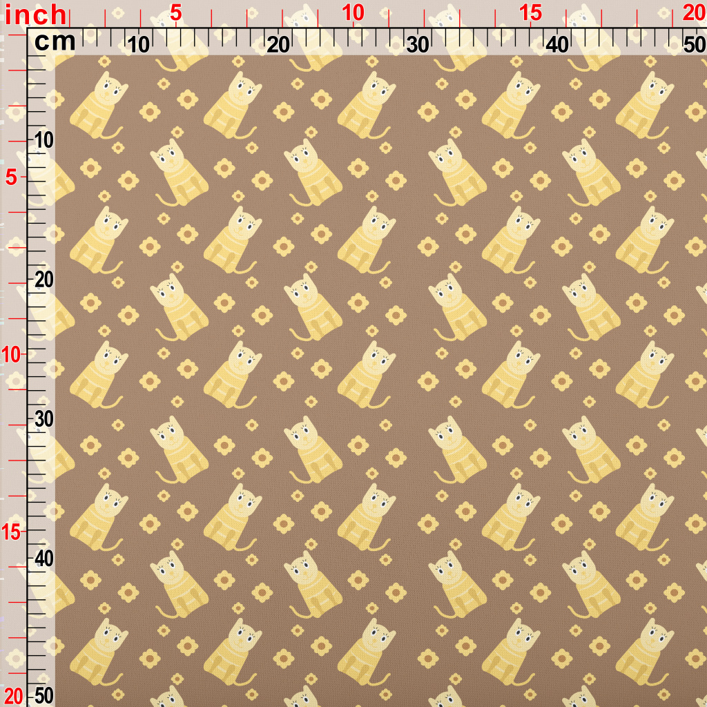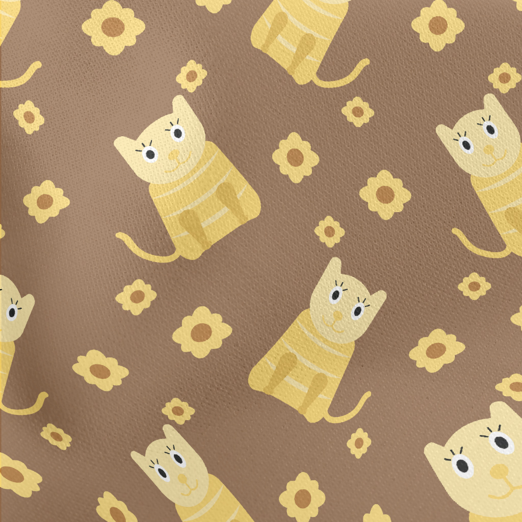 Cute Cat And Flowers Lightweight Cotton Poplin