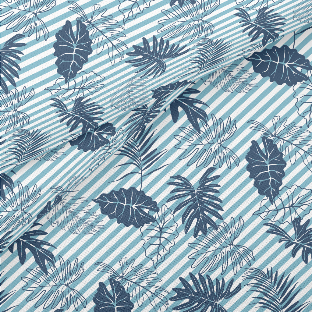 Blue Silhouette Tropical Leave Lightweight Cotton Poplin