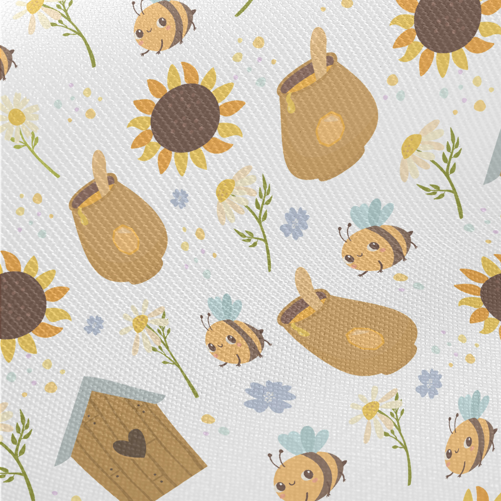 Cute Bees And Flowers Midweight Cotton Poplin