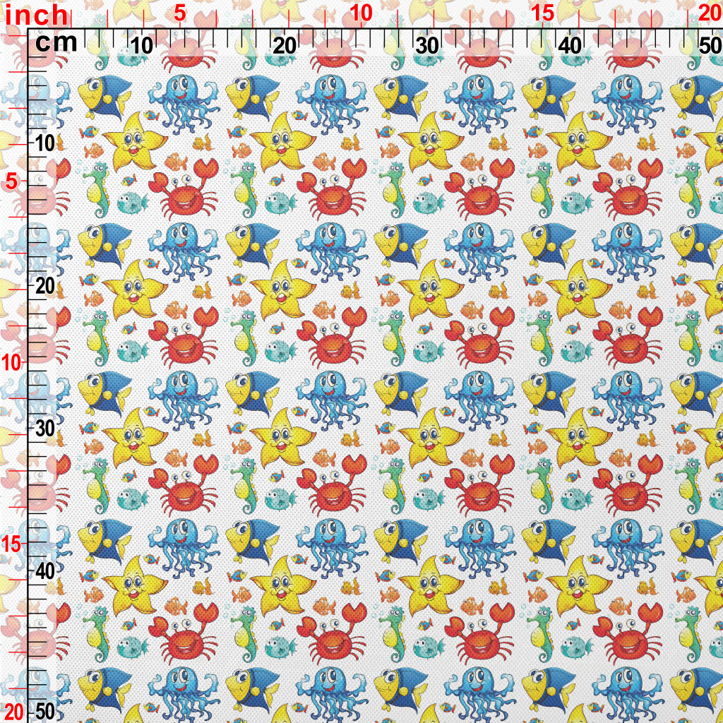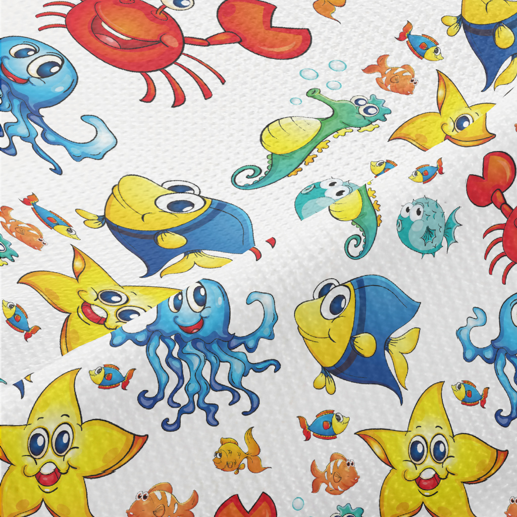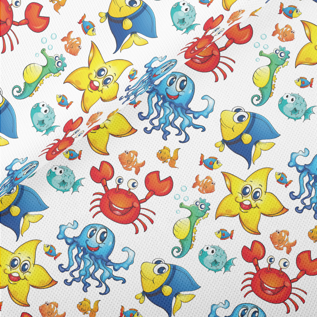 Colorful Cartoon Underwater Cr Piqué