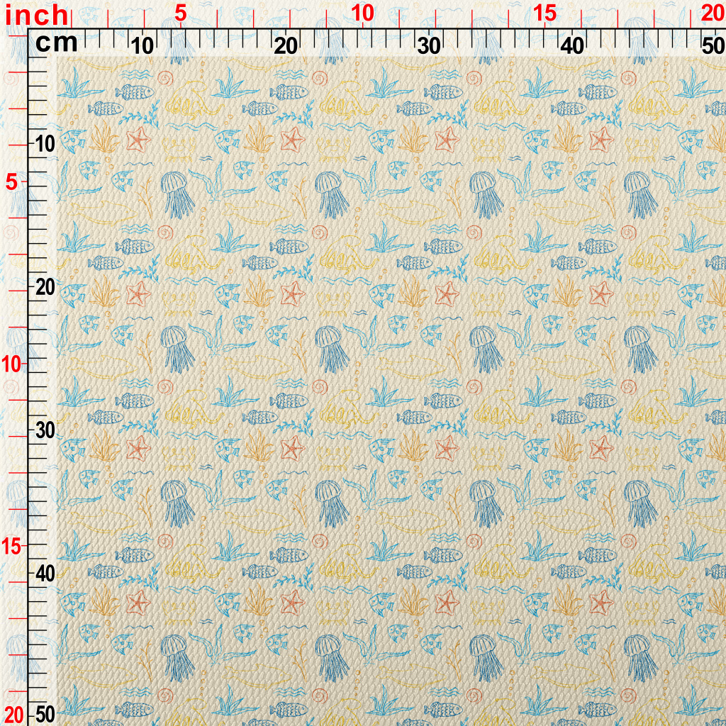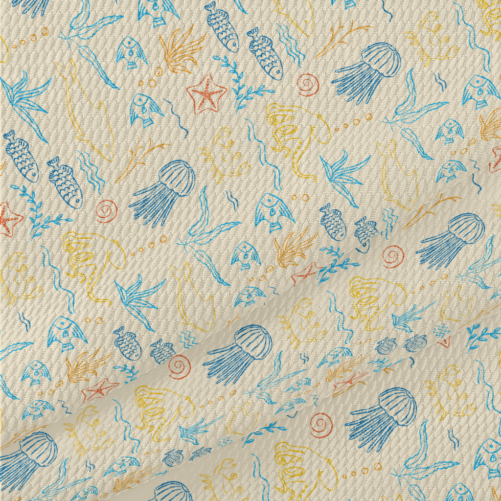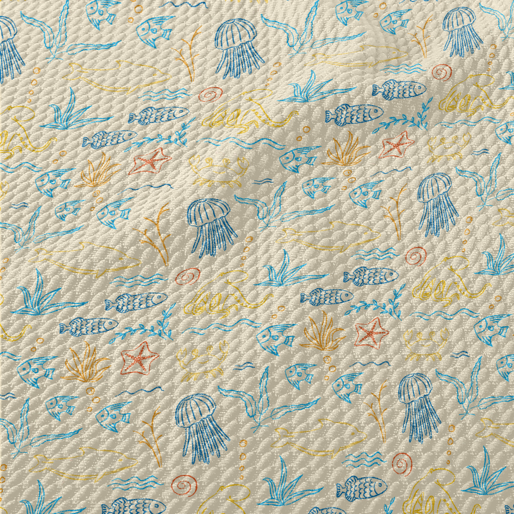 Colorful Hand-Painted Ocean Wo Birdseye Piqué