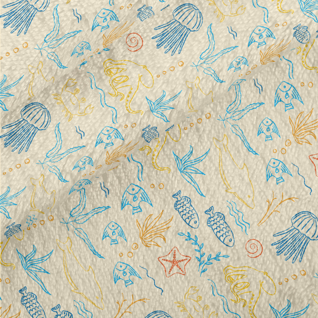 Colorful Hand-Painted Ocean Wo Minky