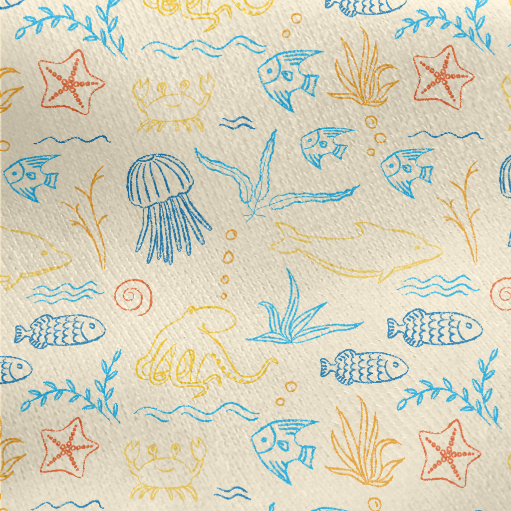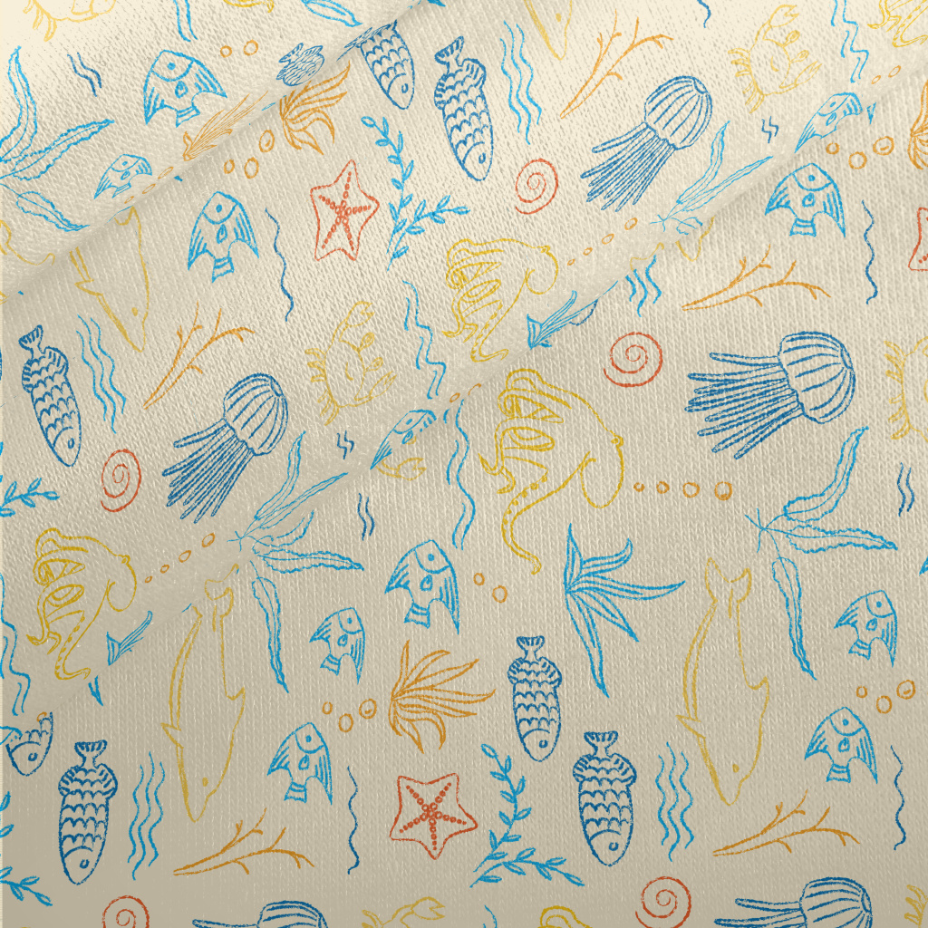 Colorful Hand-Painted Ocean Wo Jersey Backed Fleece
