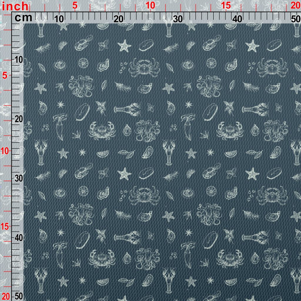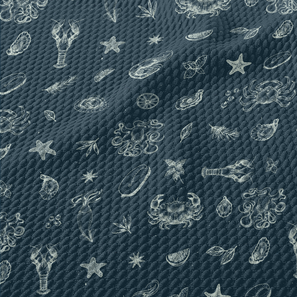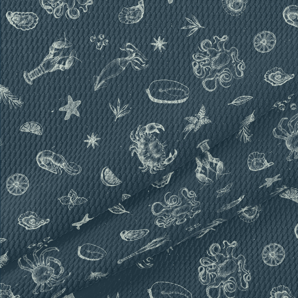 Realistic Hand-drawn Seafood Birdseye Piqué