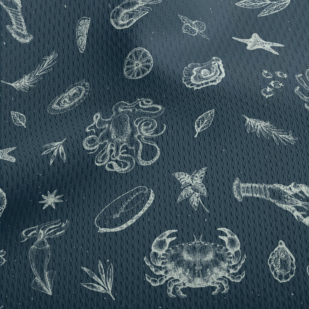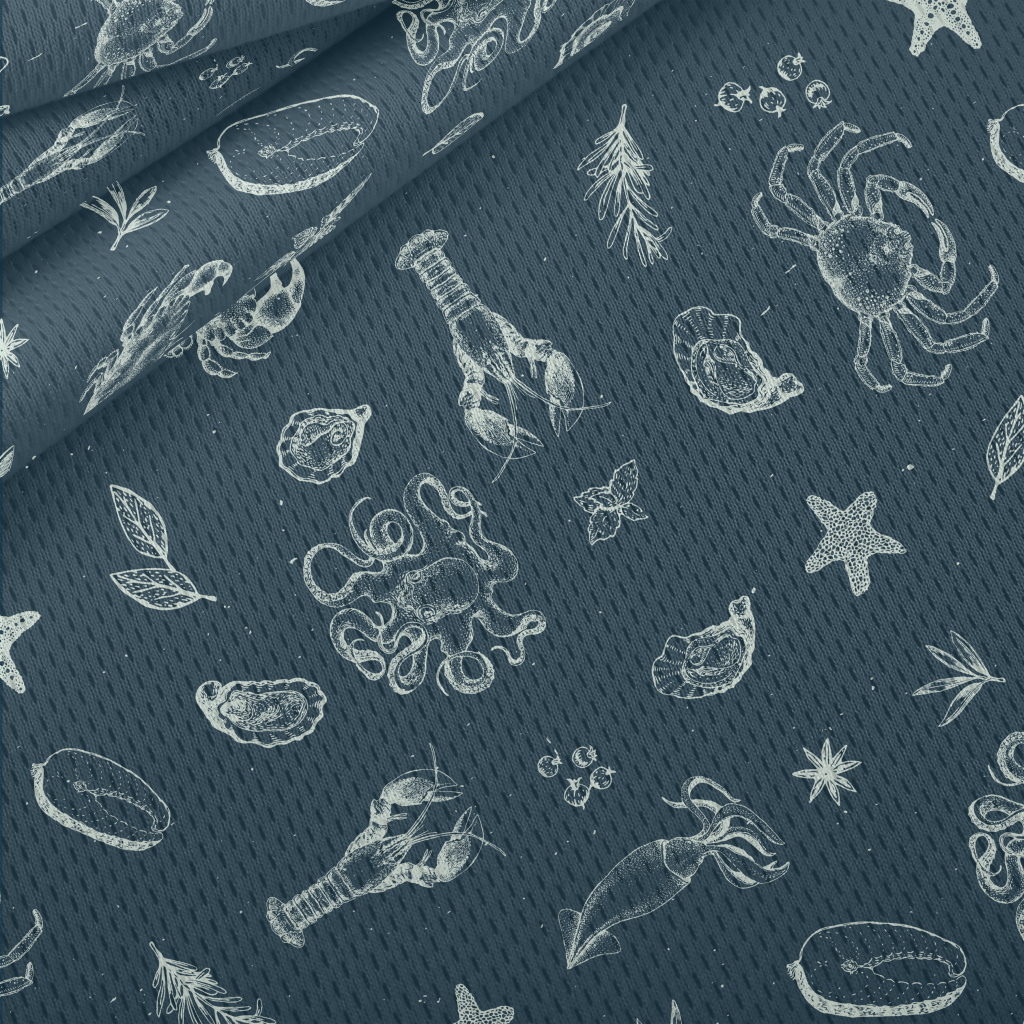 Realistic Hand-drawn Seafood Athletic Mesh Flat Back