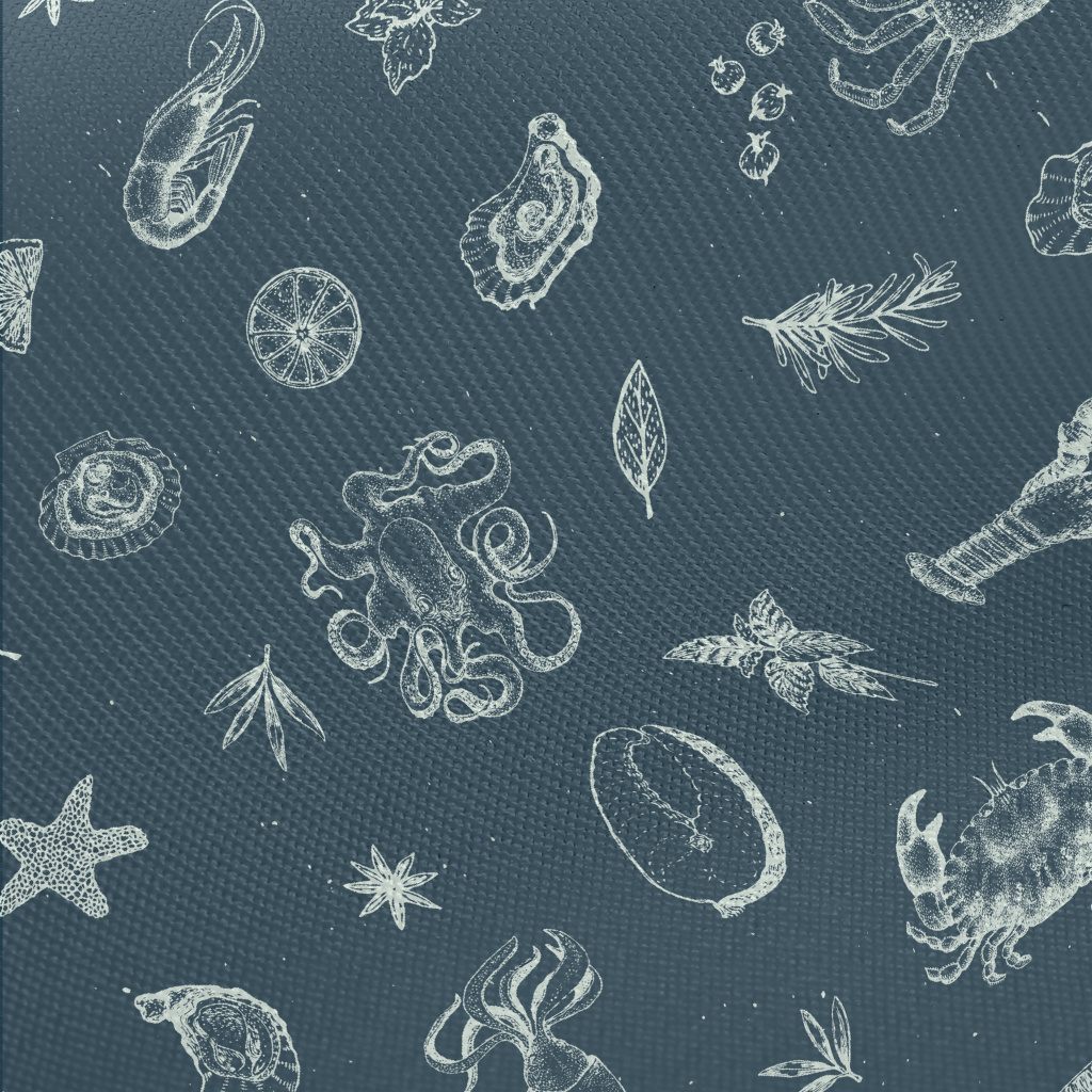 Realistic Hand-drawn Seafood Twill