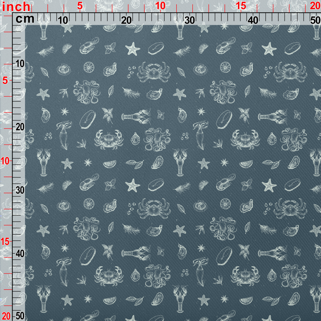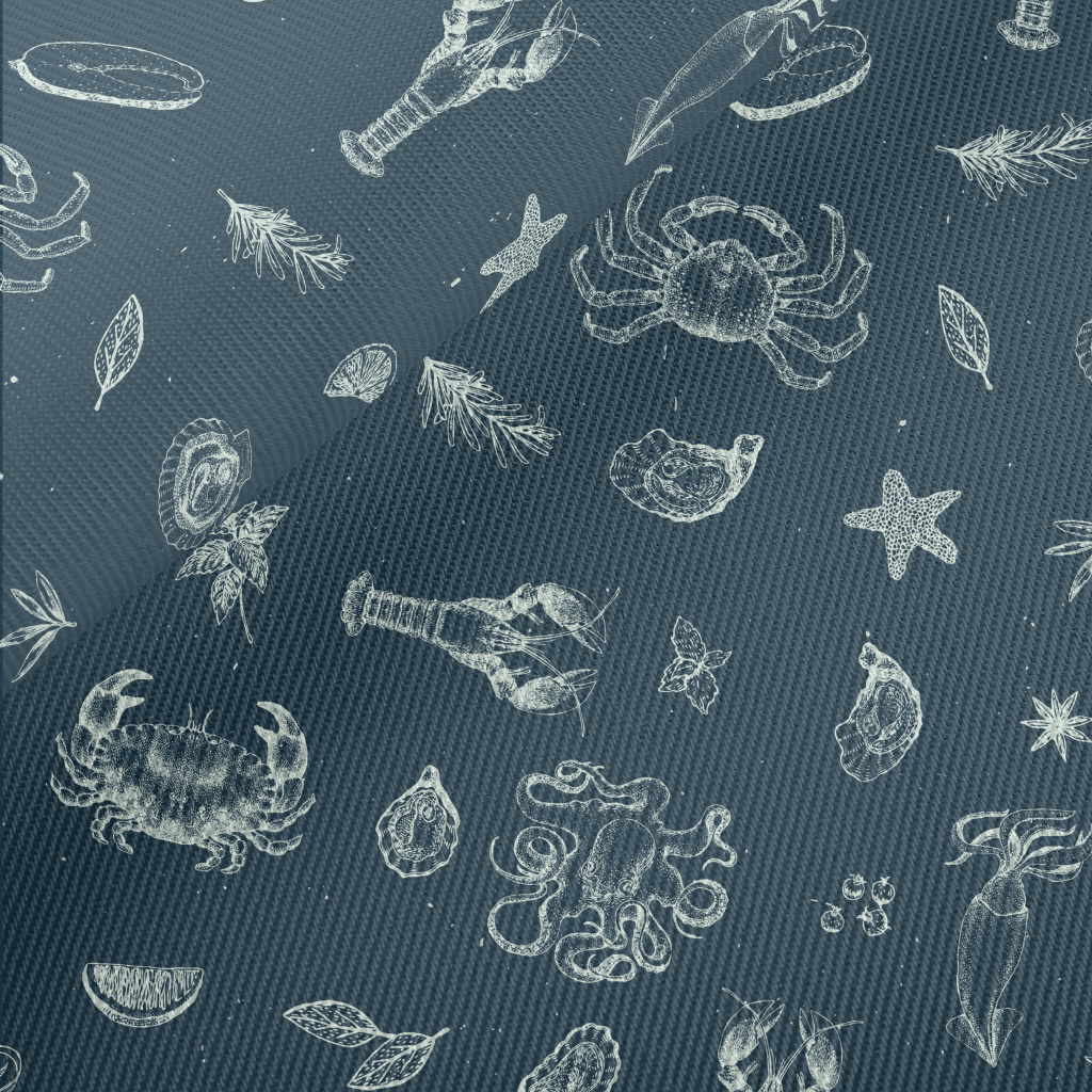 Realistic Hand-drawn Seafood Midweight Cotton Poplin
