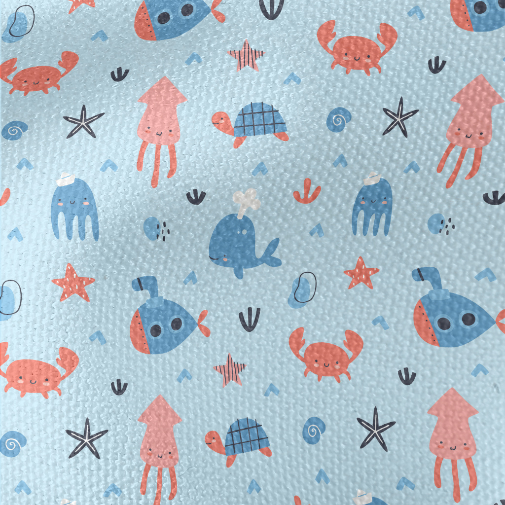 Cute Blush Sea Creatures Waterproof Canvas