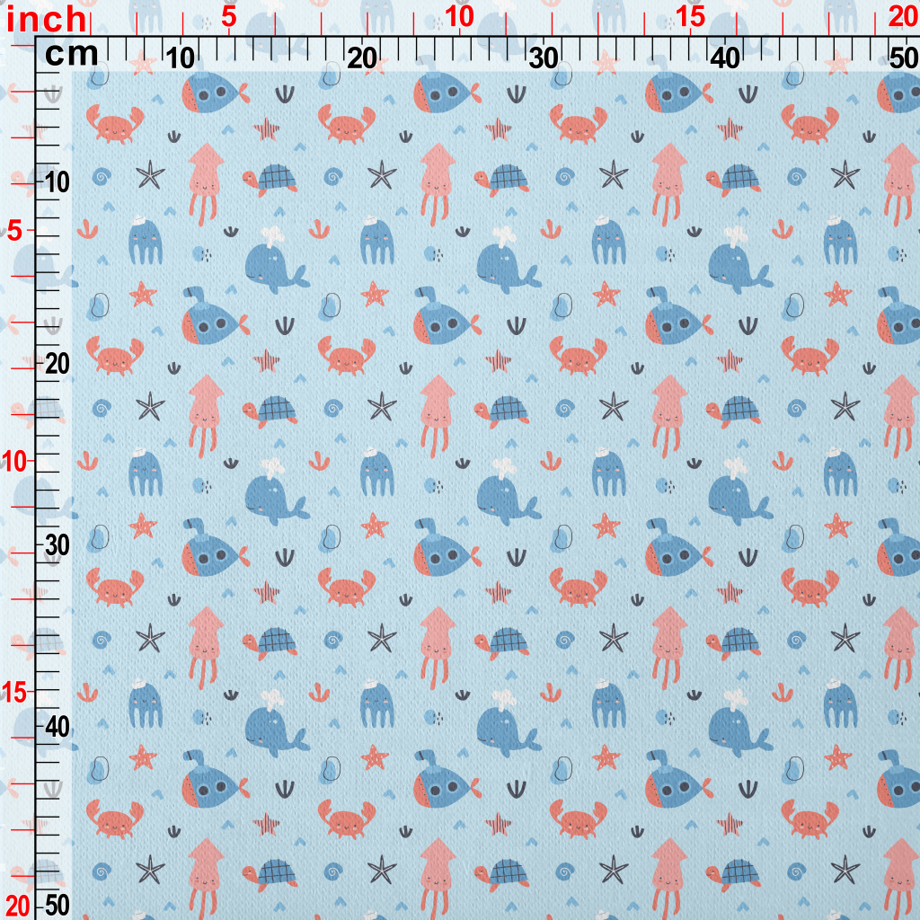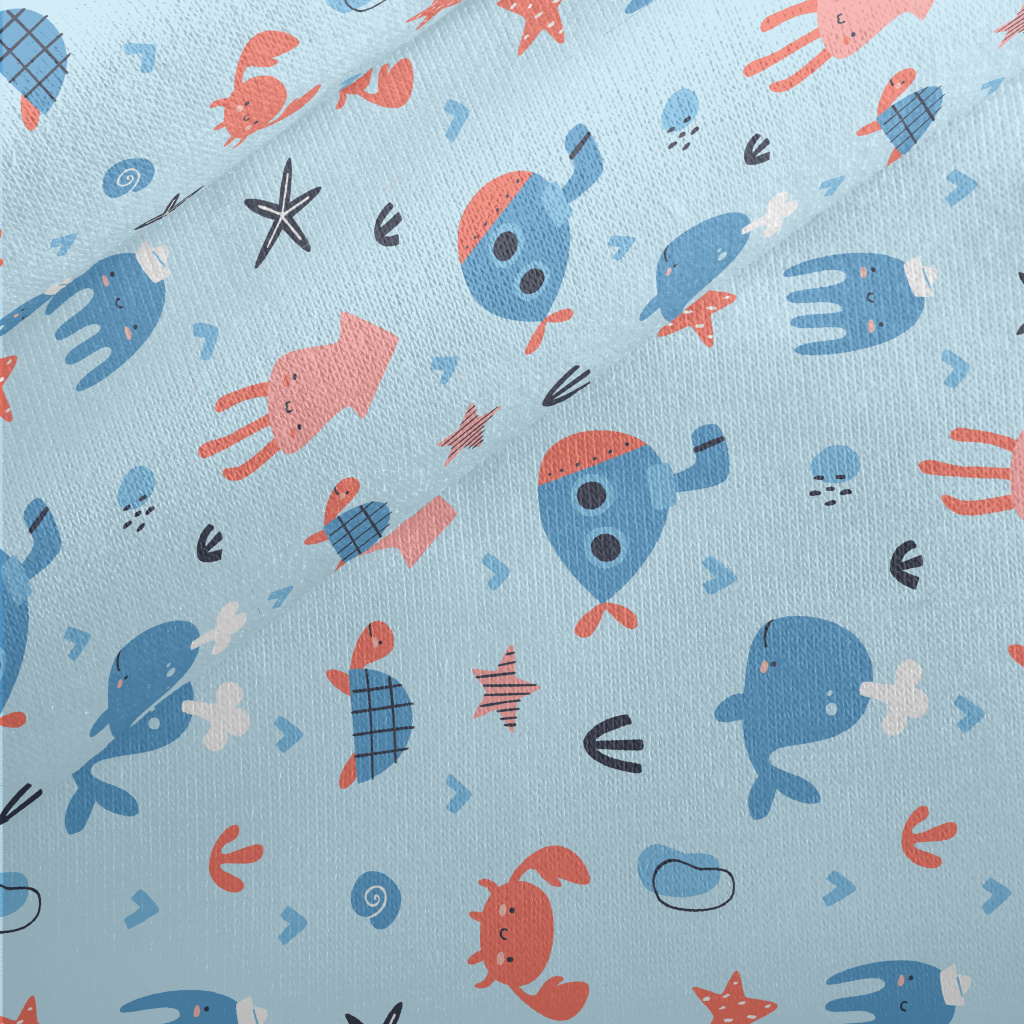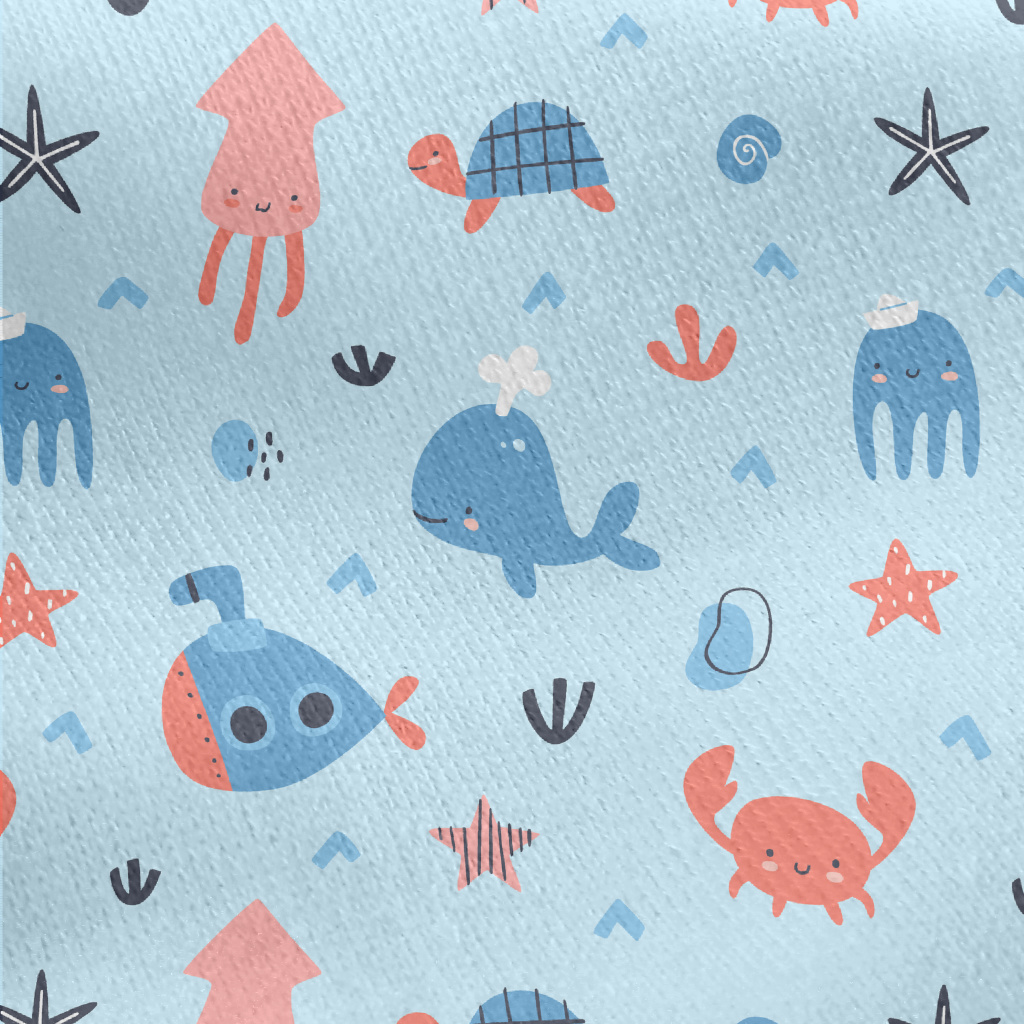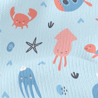 Cute Blush Sea Creatures Jersey Backed Fleece