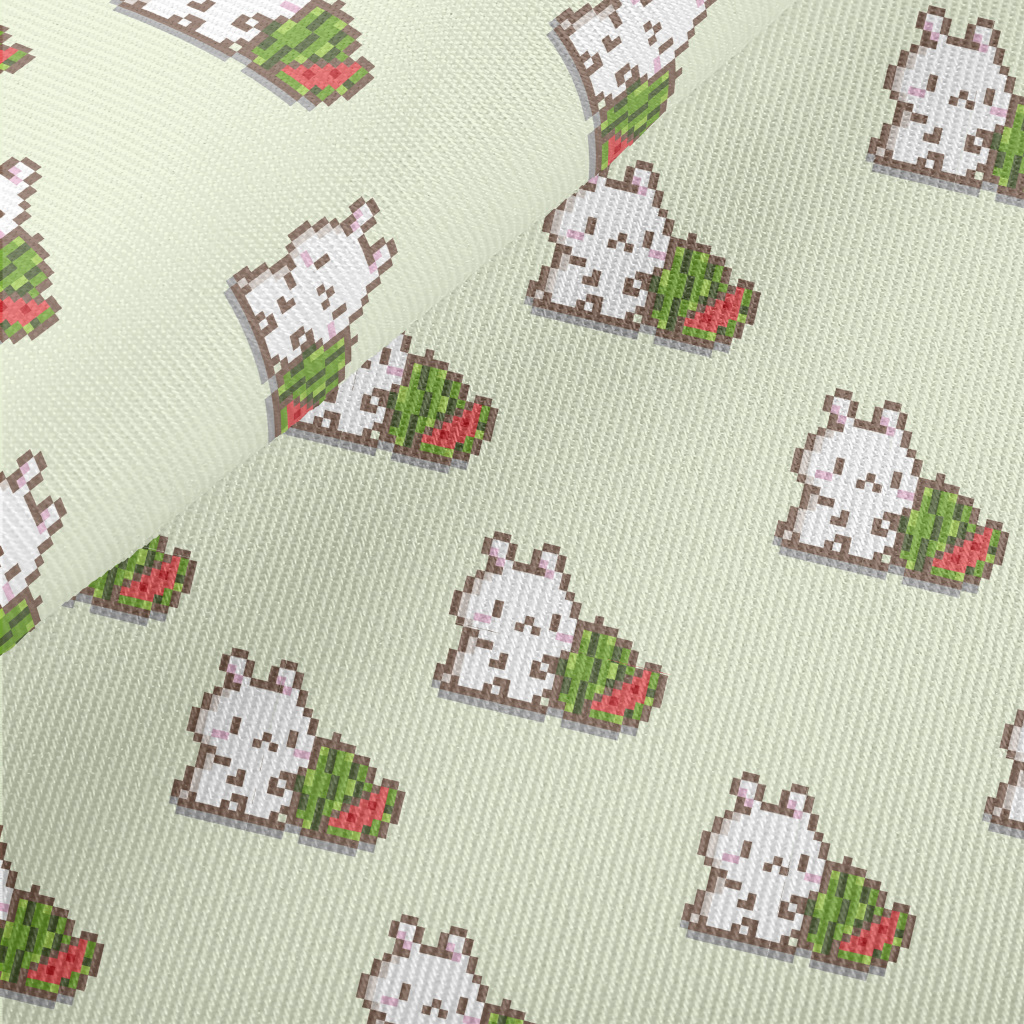 Cute Pixelated Bunny And Water Twill