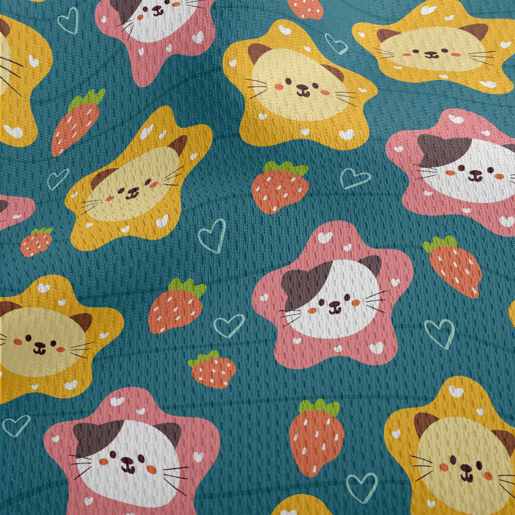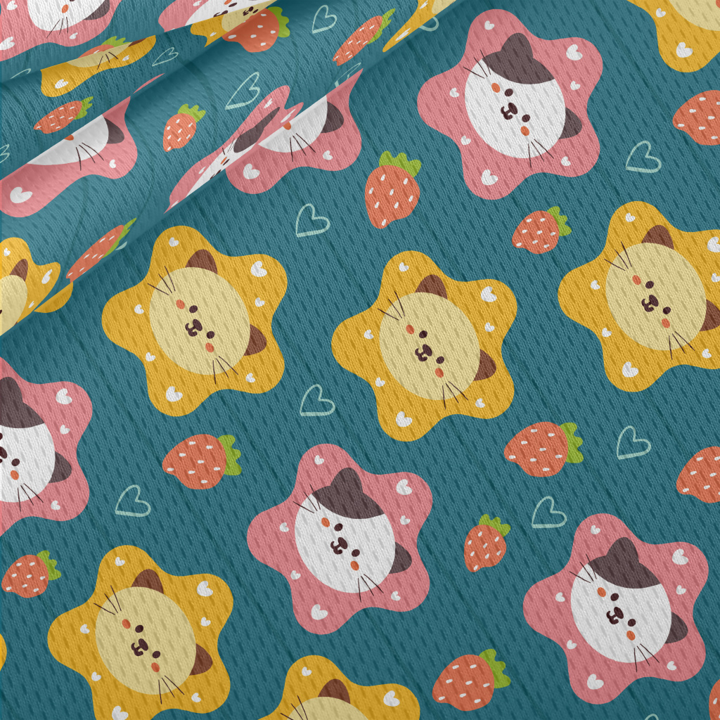 Cute Cat And Strawberry Heart Athletic Mesh Flat Back