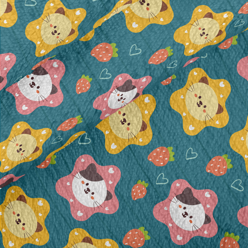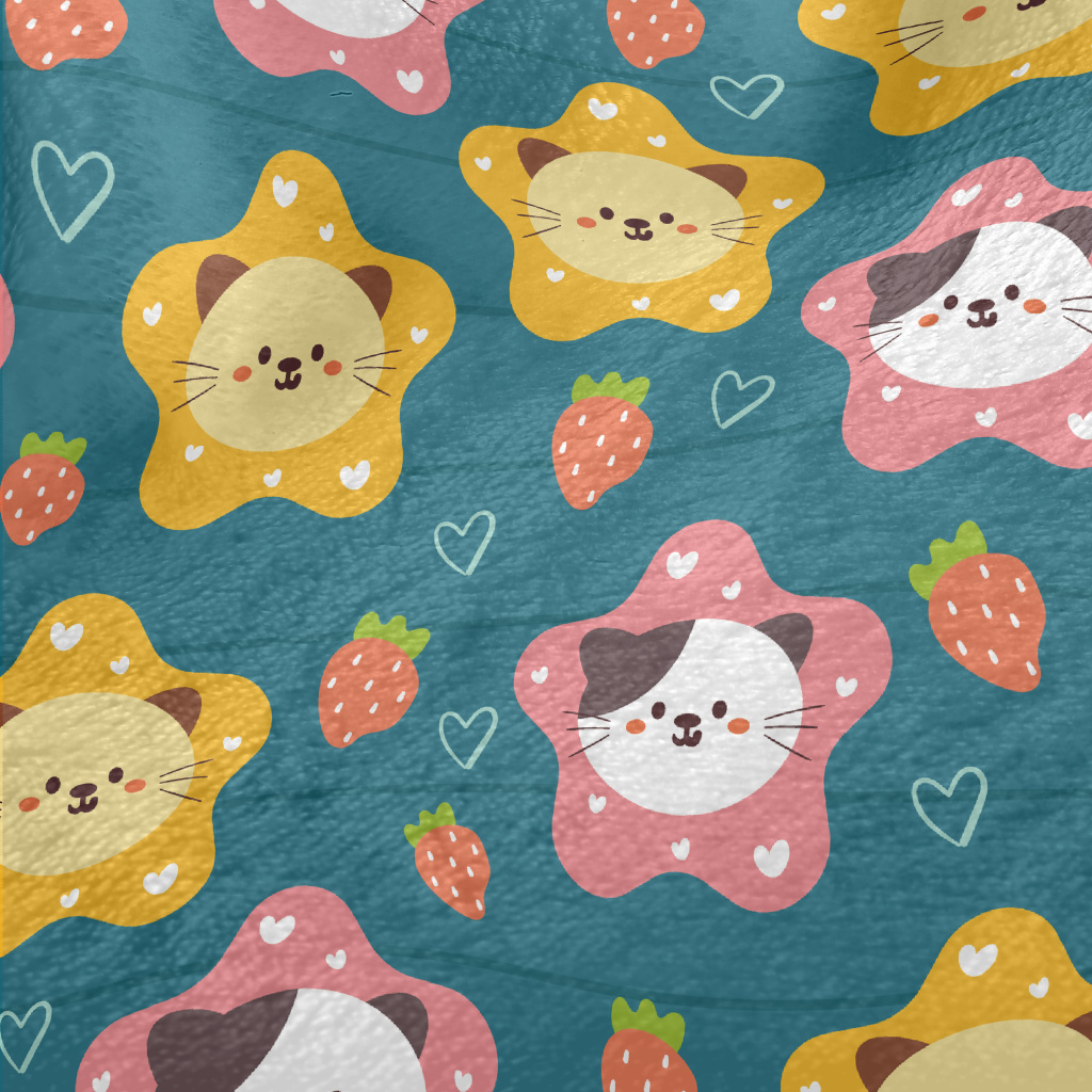 Cute Cat And Strawberry Heart Minky