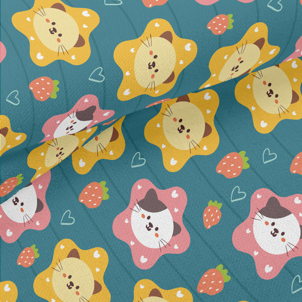 Cute Cat And Strawberry Heart Lightweight Performance Linen