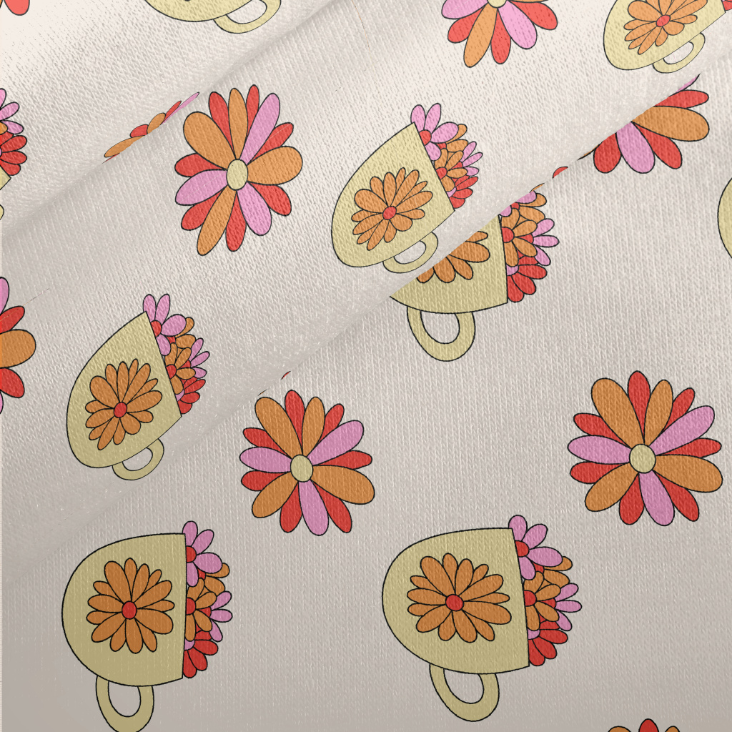 Fill A Cup With Colorful Flowe Jersey Backed Fleece
