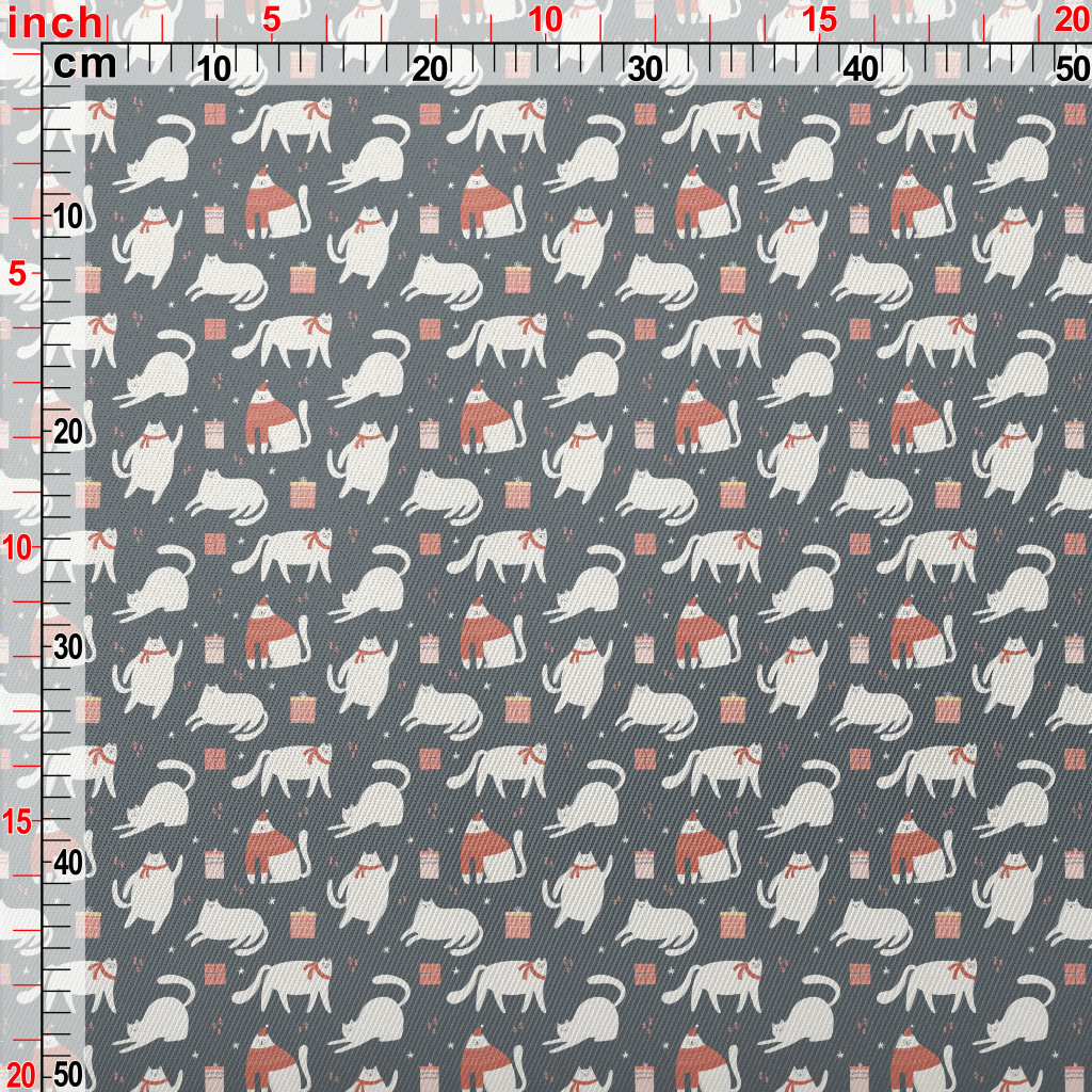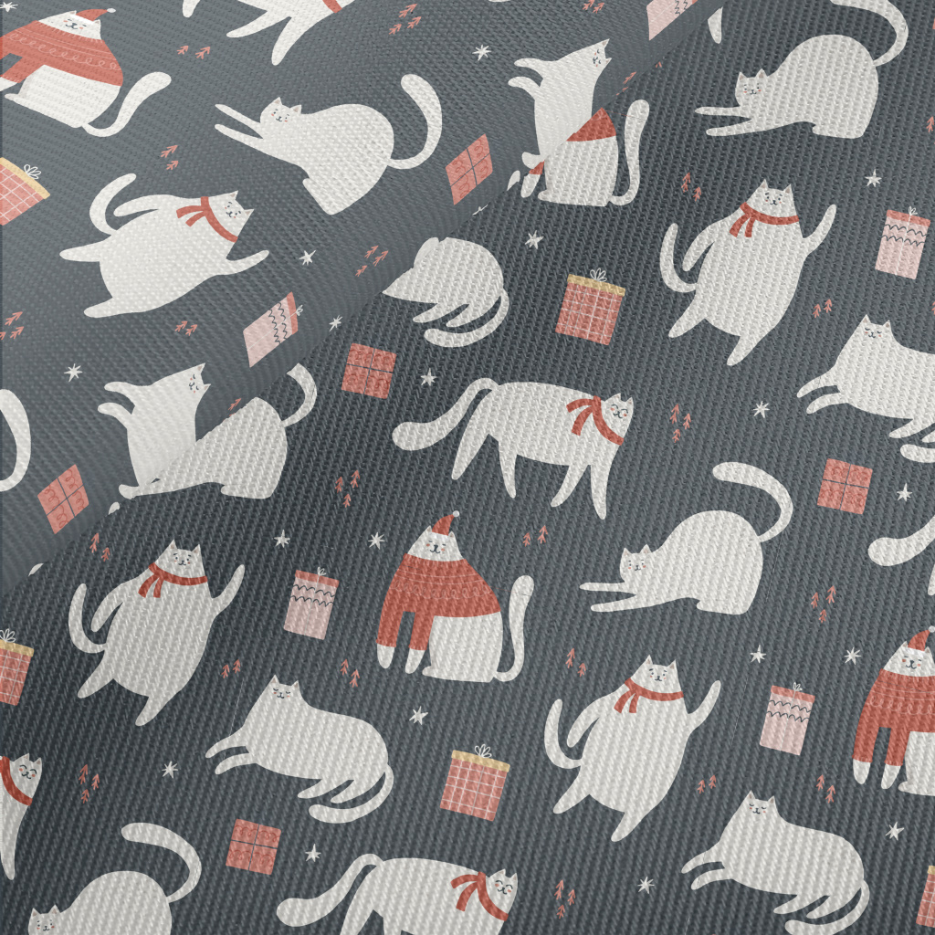 Christmas White Cat And Gifts Twill