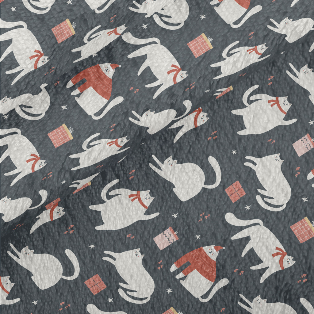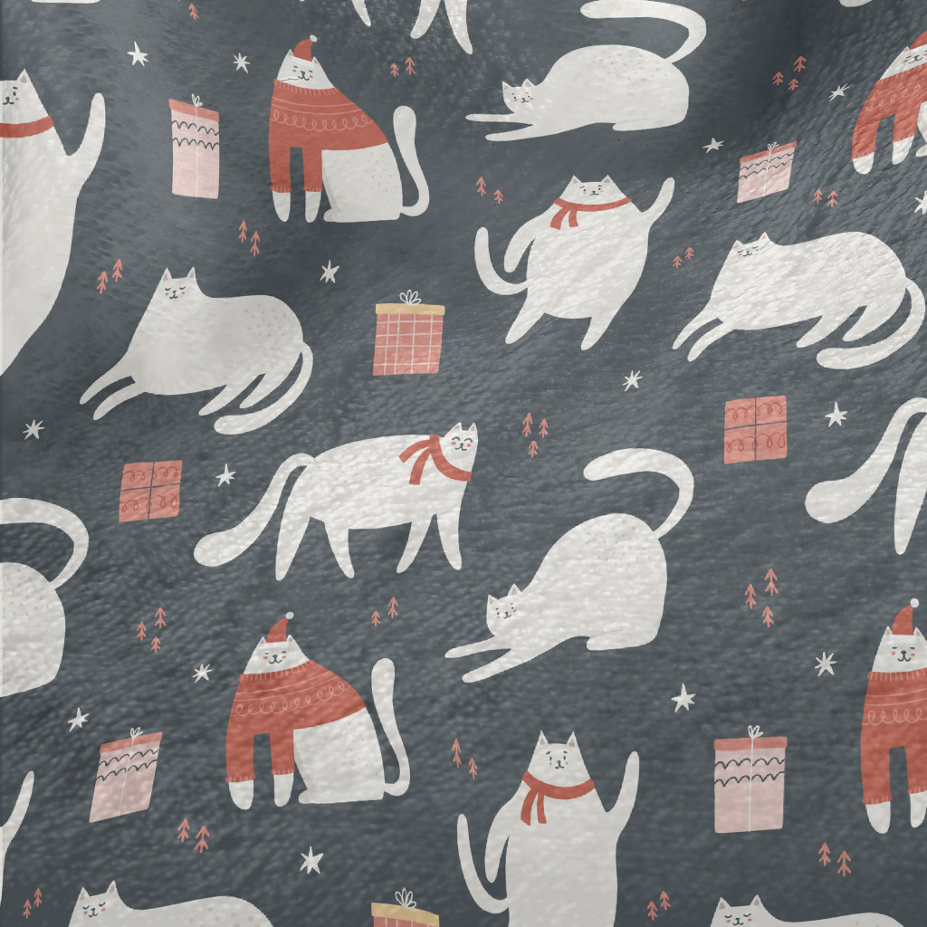 Christmas White Cat And Gifts Minky