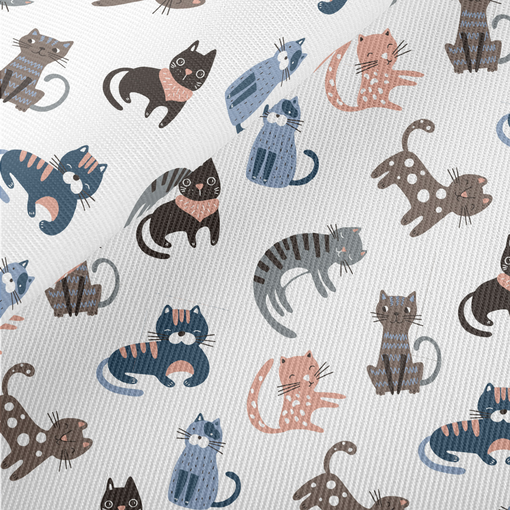 Hand-drawn Cats In Different P Midweight Cotton Poplin