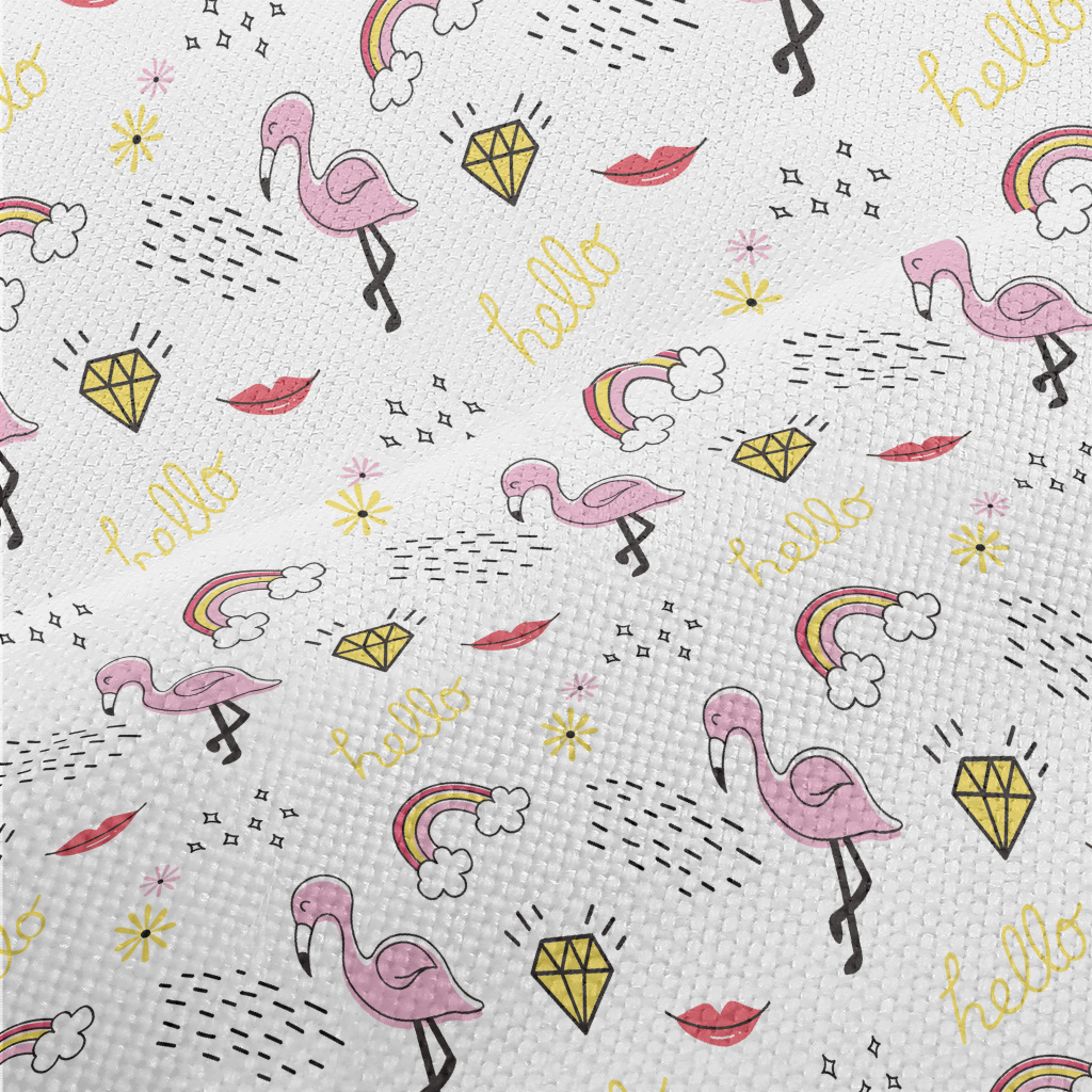 Flamingo And Rainbow Diamond L Performance Linen