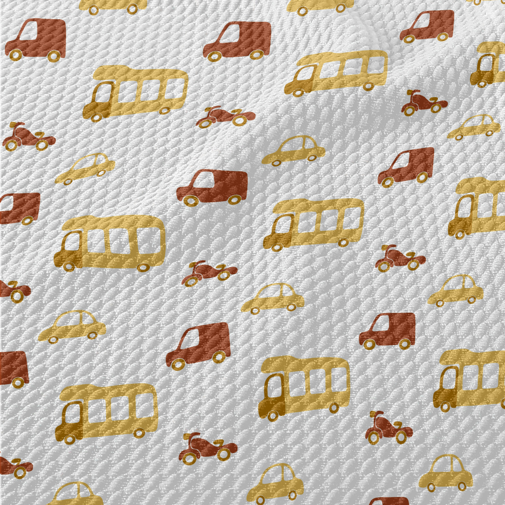 Various Cars, Buses, And Motor Birdseye Piqué